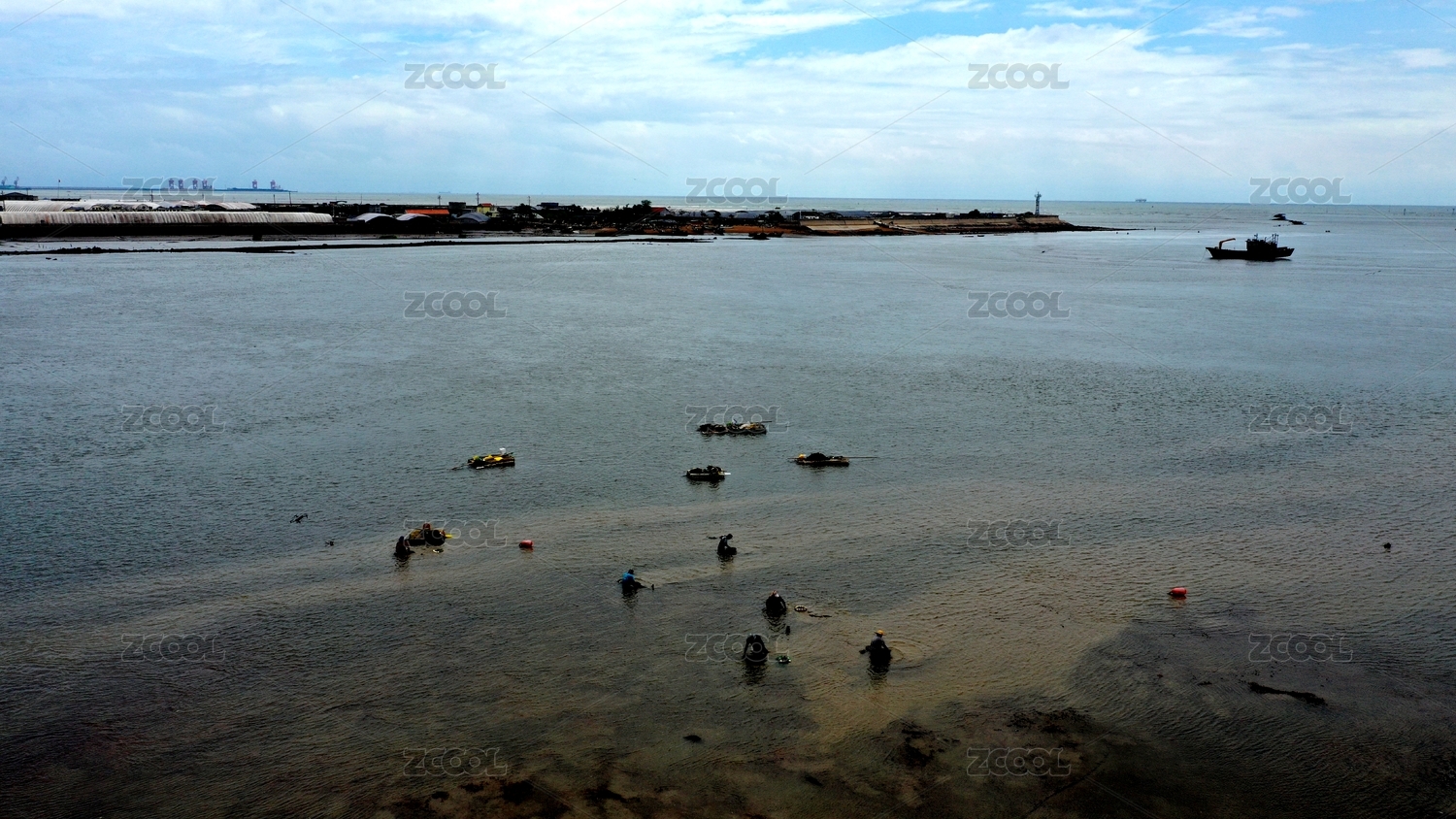 老渔民滩涂里扒蛤蜊 成入海口独特风景
