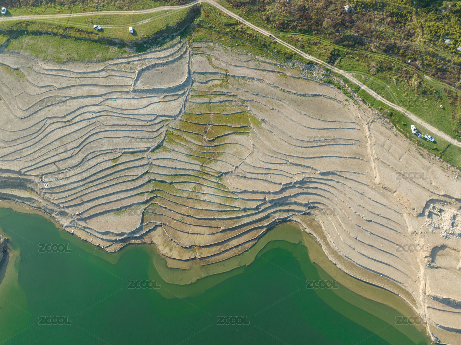 中国湖北恩施河边干旱的梯田稻田正在荒漠化