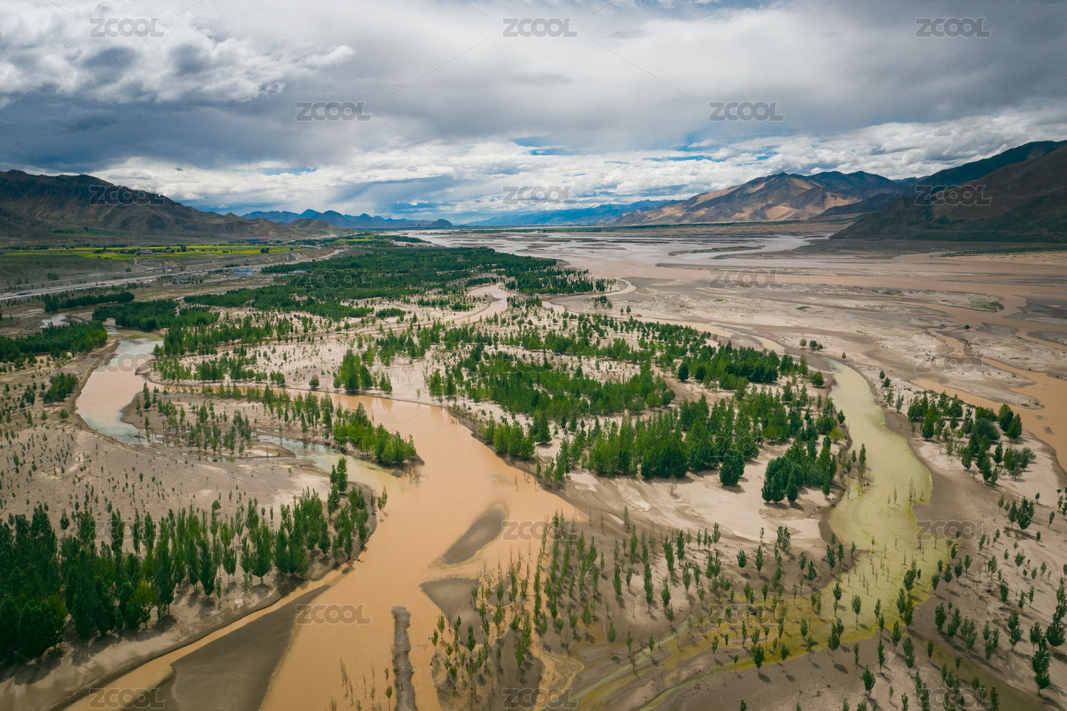 中国西藏日喀则雅鲁藏布江自然风光航拍
