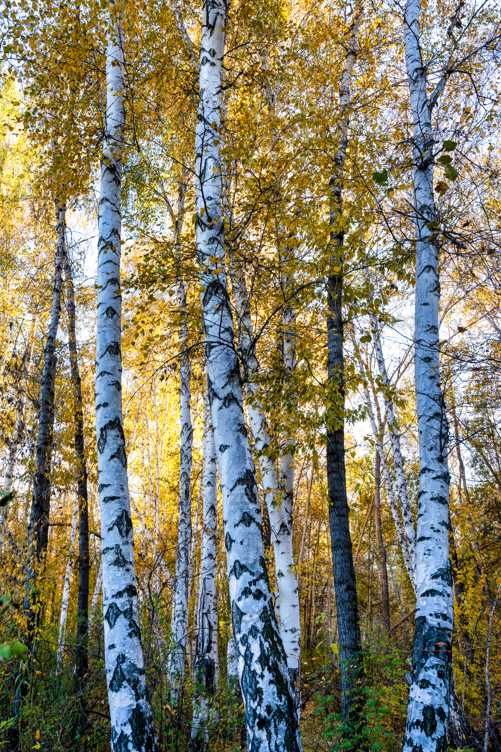 秋天内蒙古乌兰布统坝上草原的白桦树白桦林