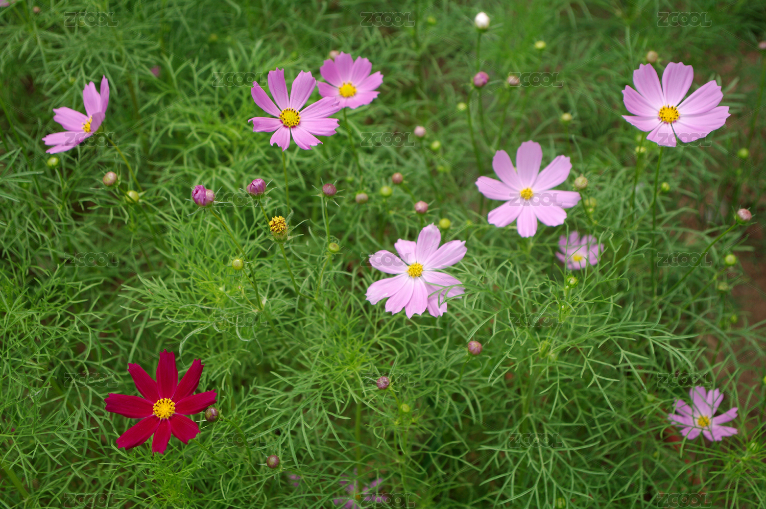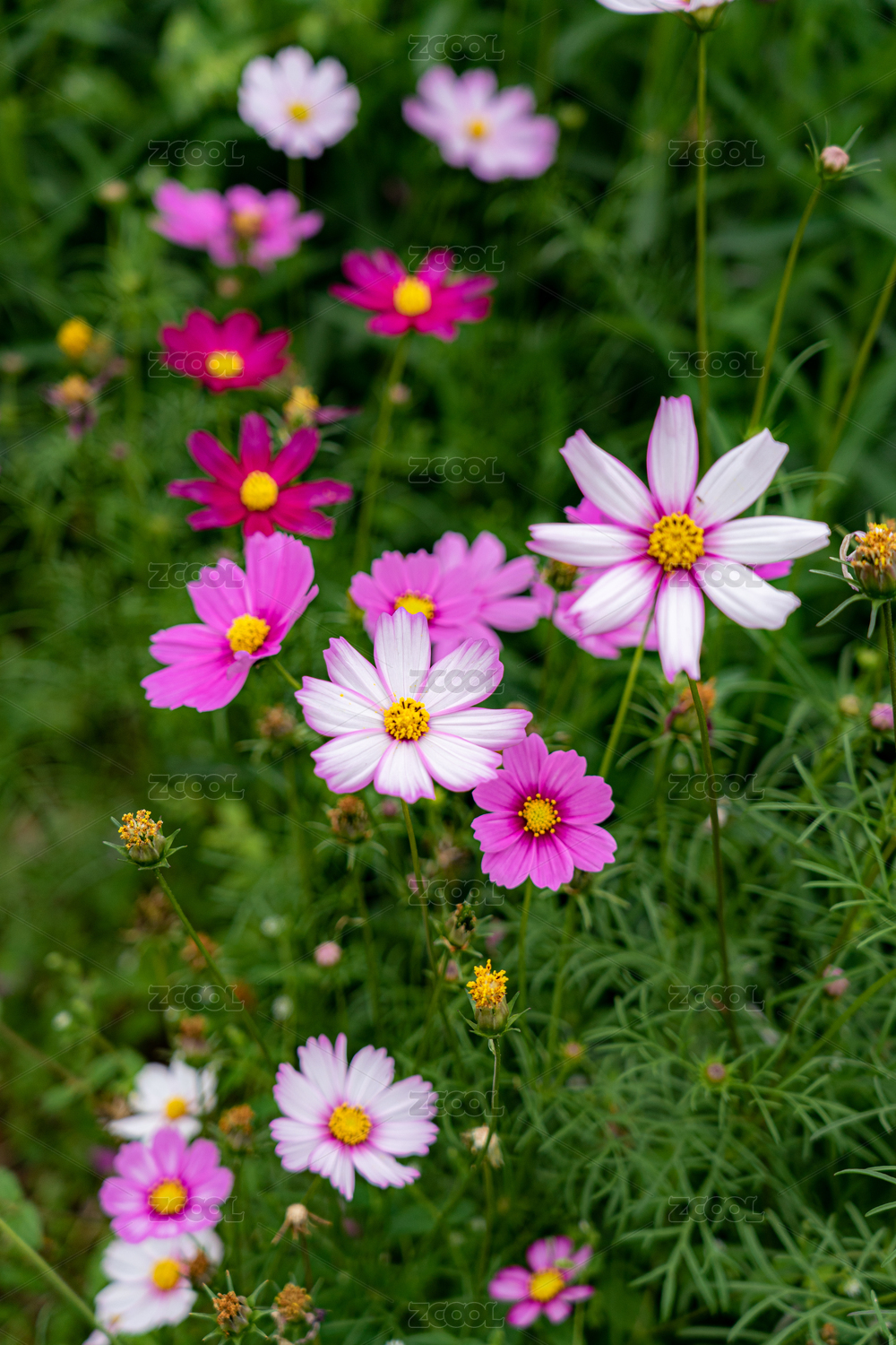 俯视视角下盛开的波斯菊