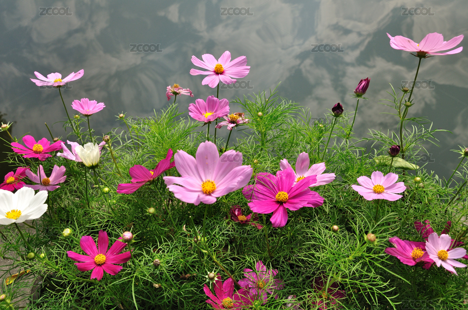 蓝天下的波斯菊