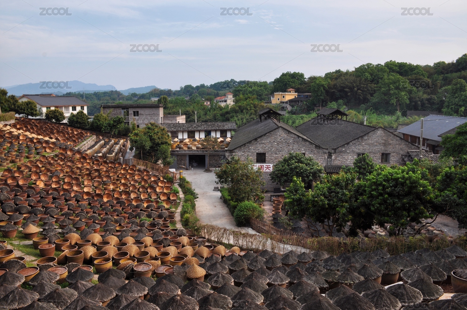中国江西景德镇的陶瓷作坊和陶瓷胚特写