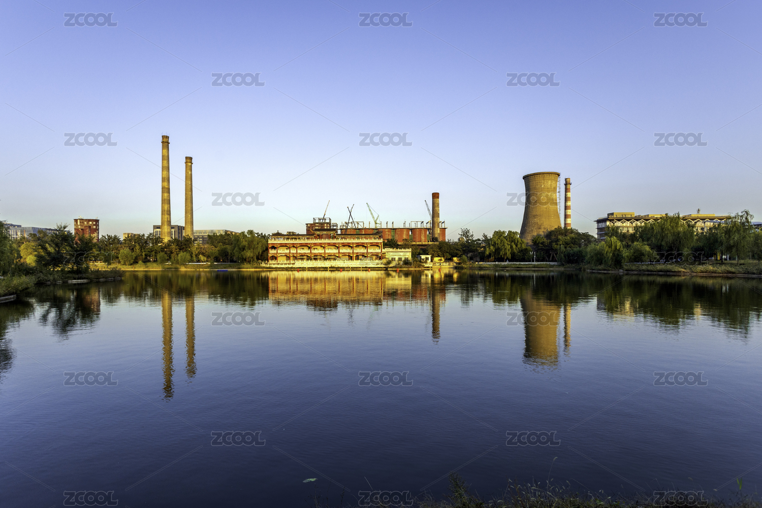 首钢园工业遗址公园冷却塔黄昏景色