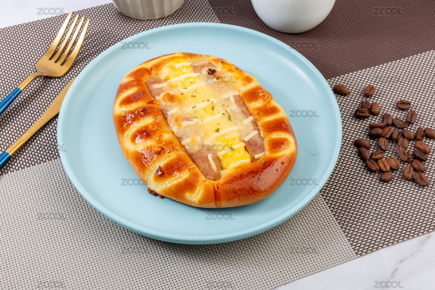 桌面上的盘子里的美味可口的丹麦肠仔包