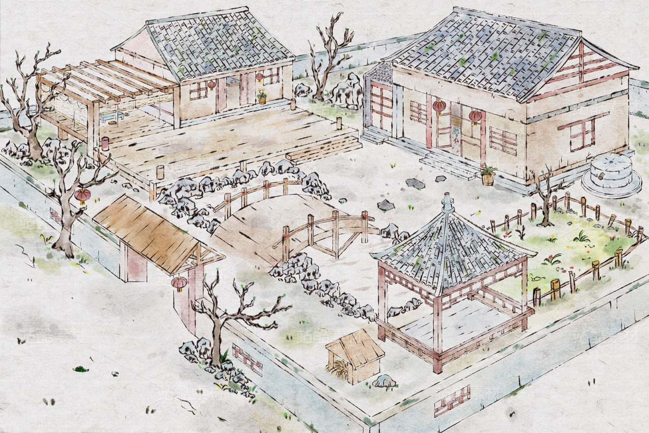 四川成都黄龙溪古镇的川西民宿民居建筑