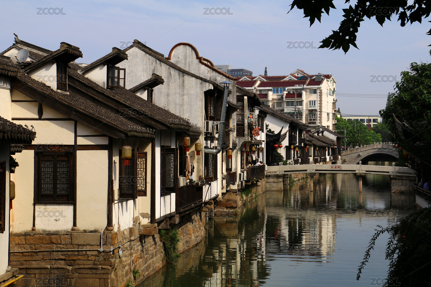 湖南湘西芙蓉镇河畔古雅民居映蓝天碧水
