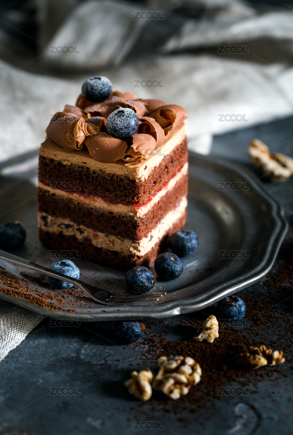 可可粉撒粉鲜奶酪黑森林蛋糕