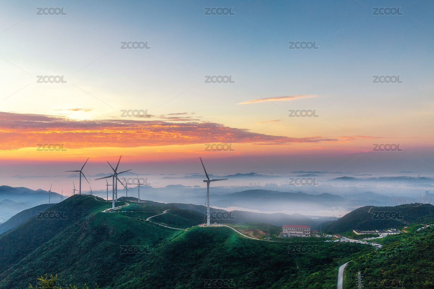 中国浙江省宁波市北仑福泉山风车公路朝霞