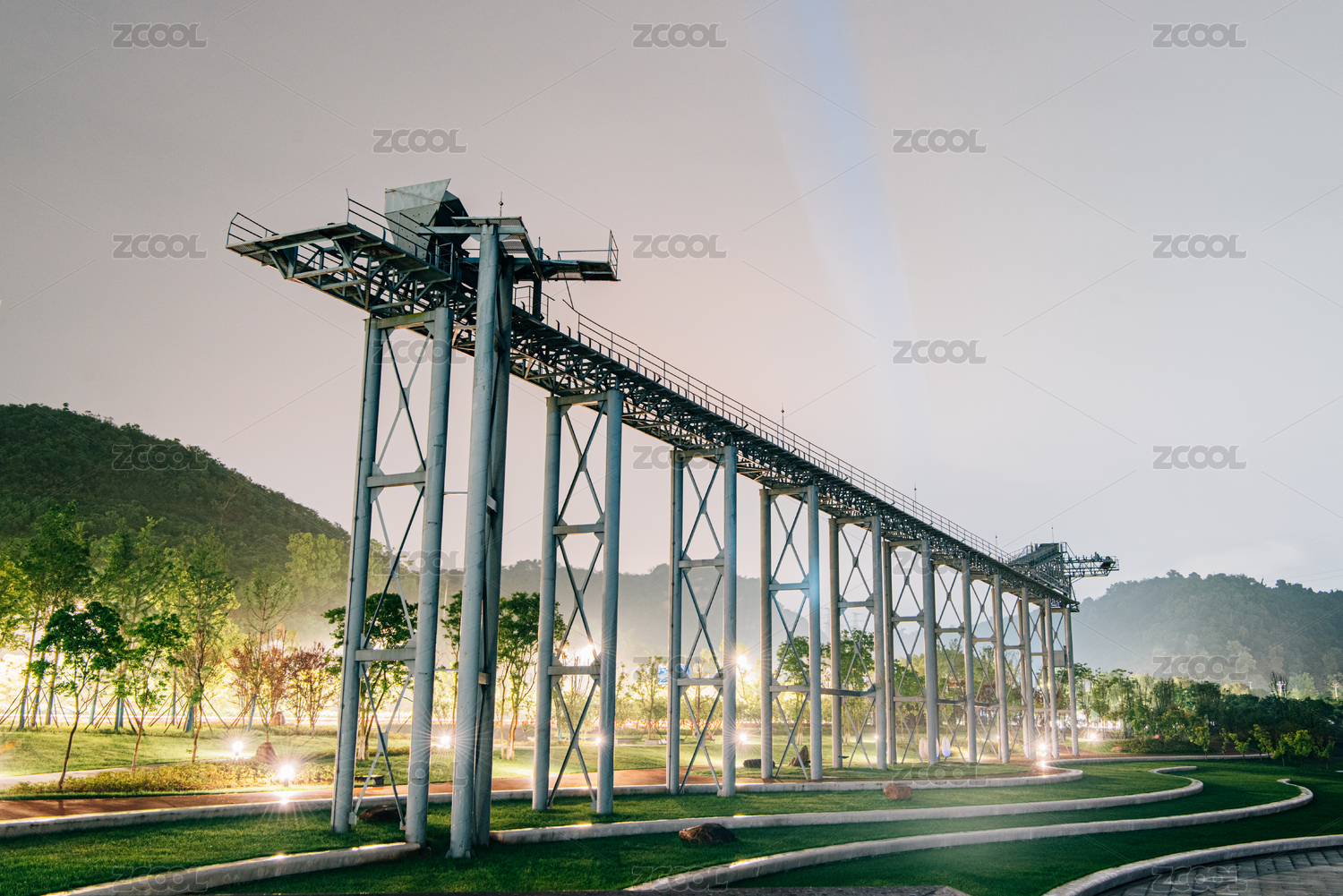 夜晚的航运吊装龙门架