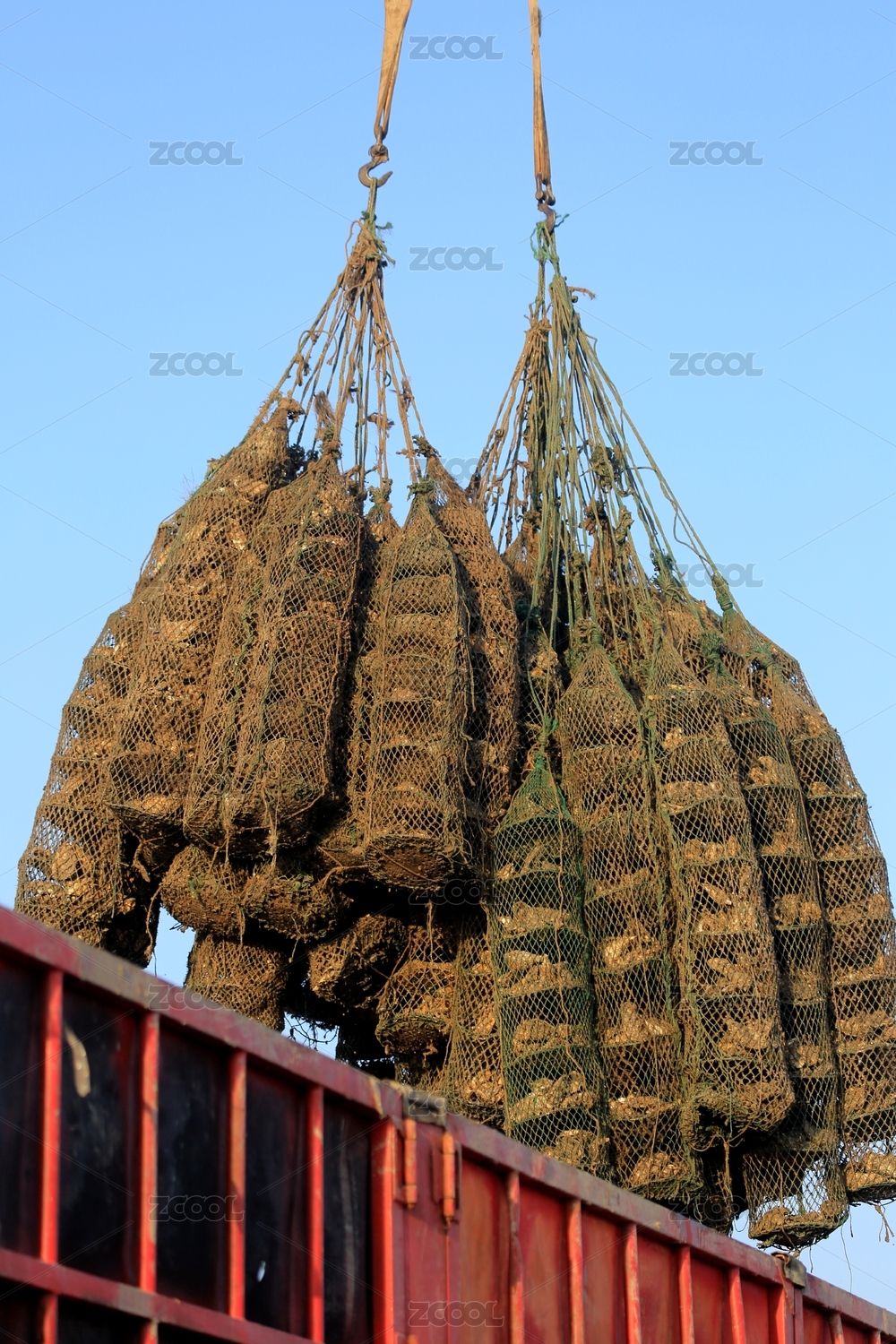 凌晨六点的渔港机声隆隆 渔民吊装养殖笼