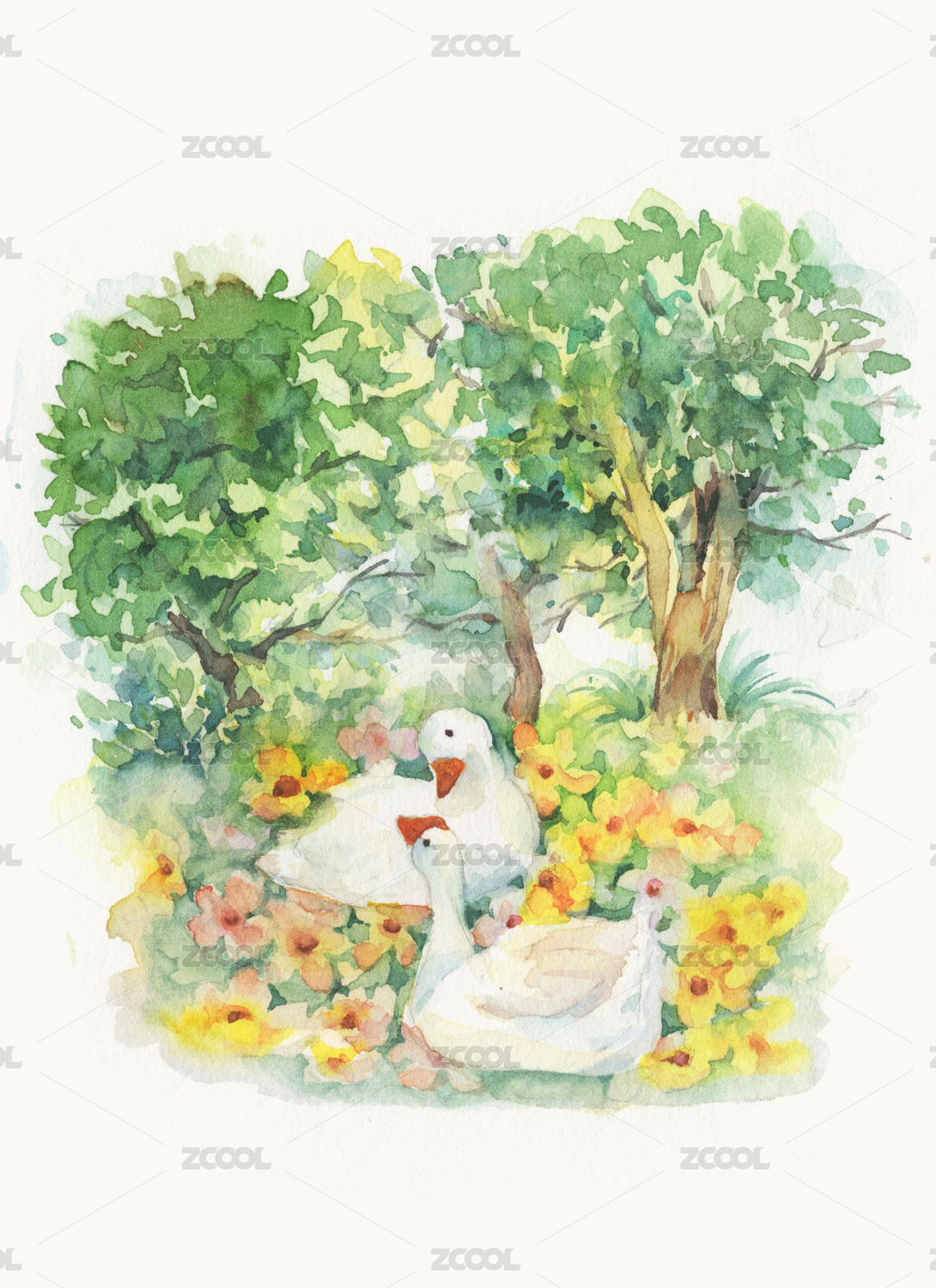 温馨可爱儿童故事童话治愈系树林草地白鹅