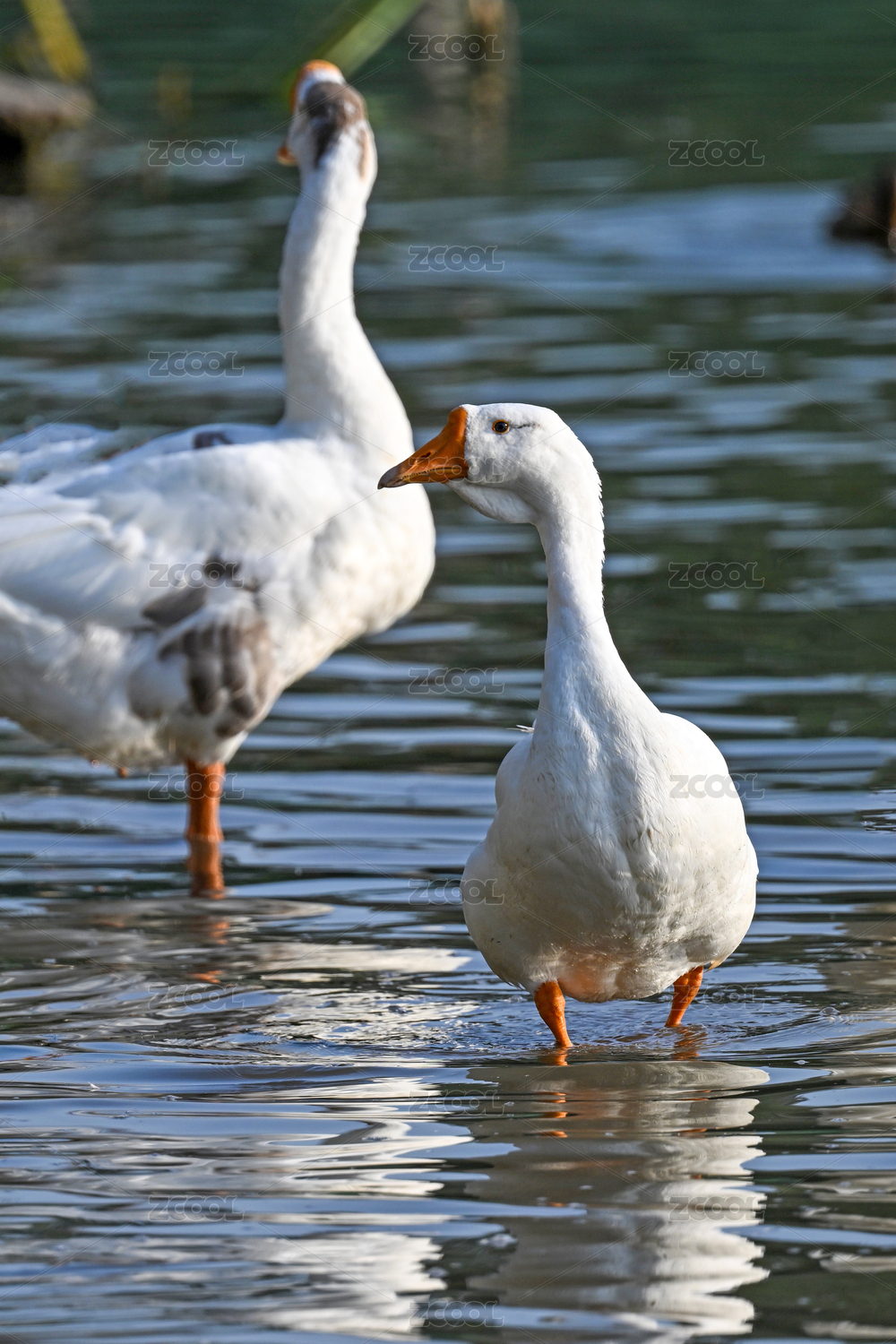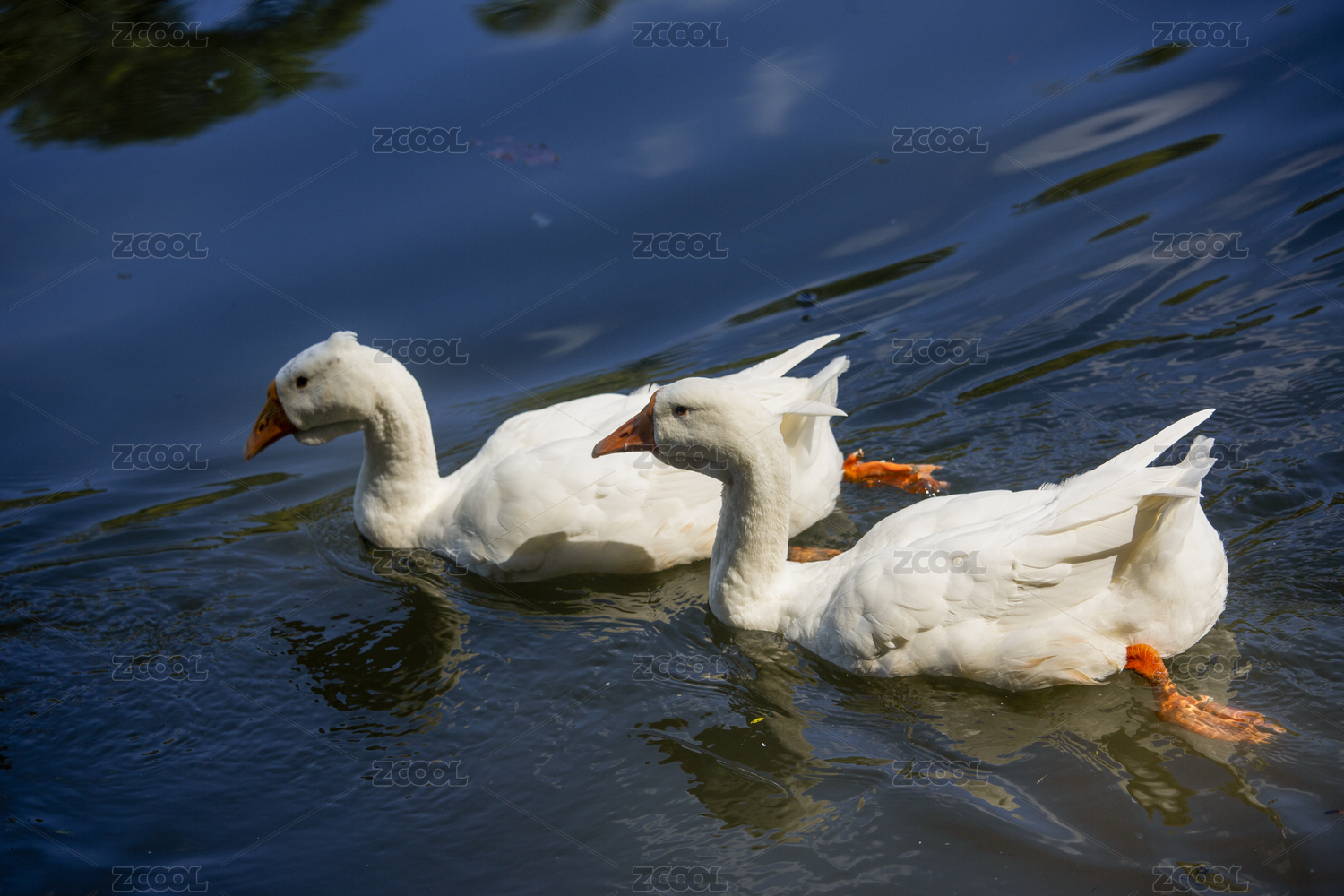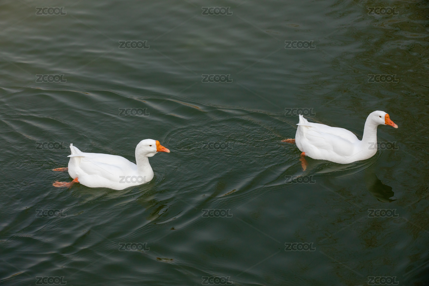 在水中游弋的一对大白鹅