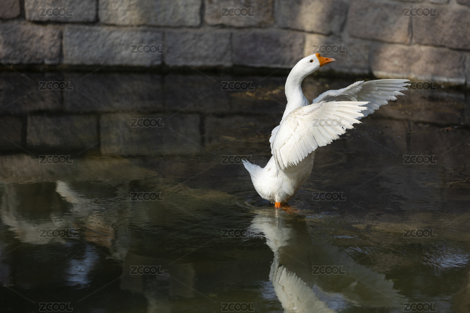 白鹅展翅湖边群鹅嬉戏