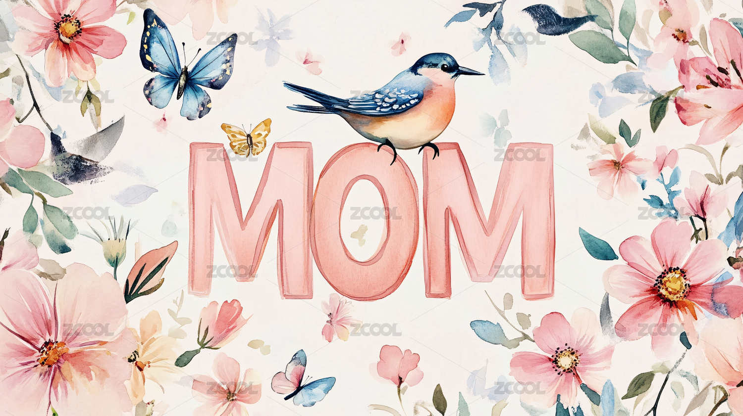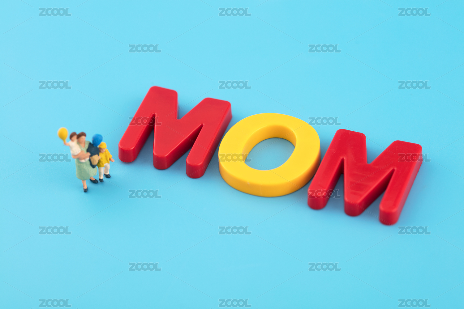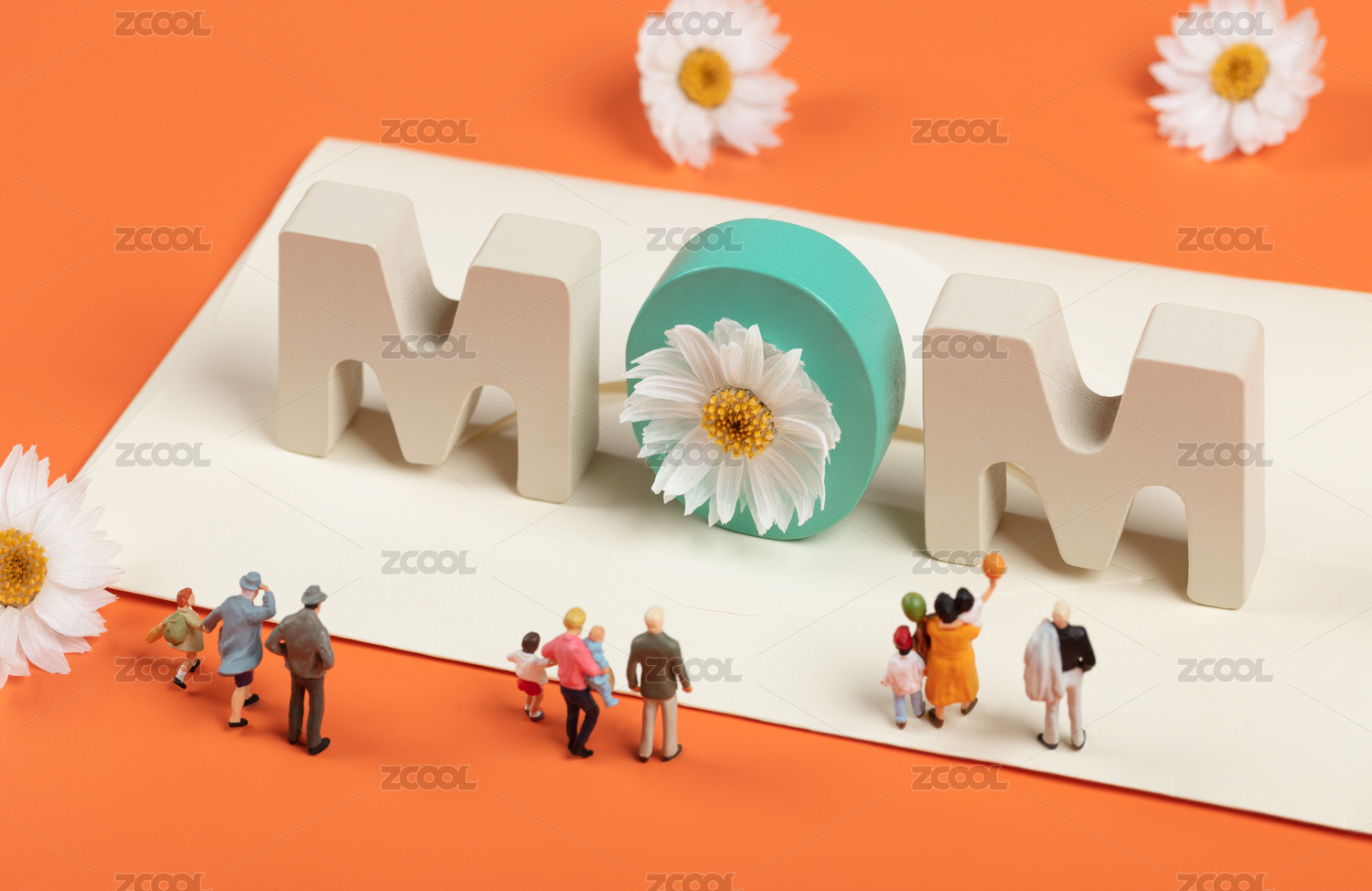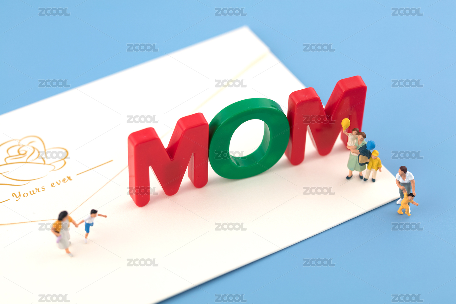 微缩创意信纸上的mom母亲节拥抱着的父母