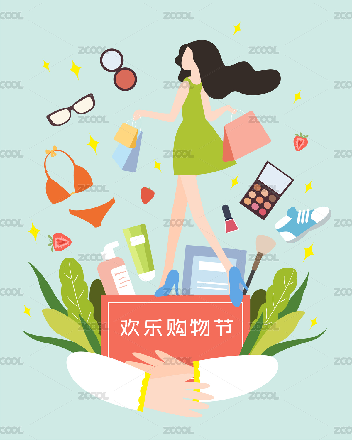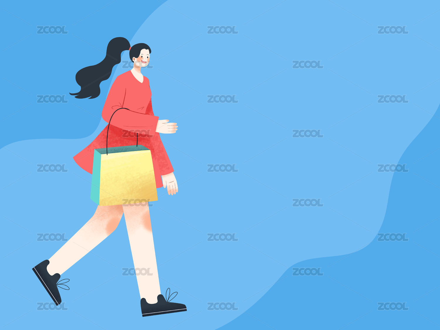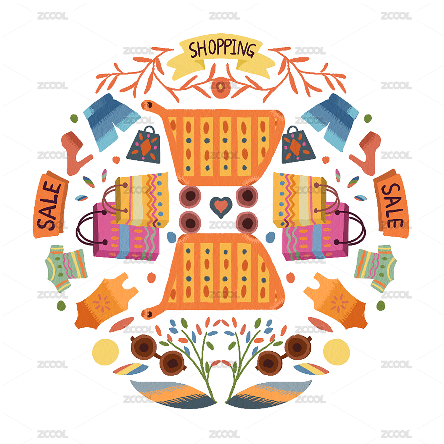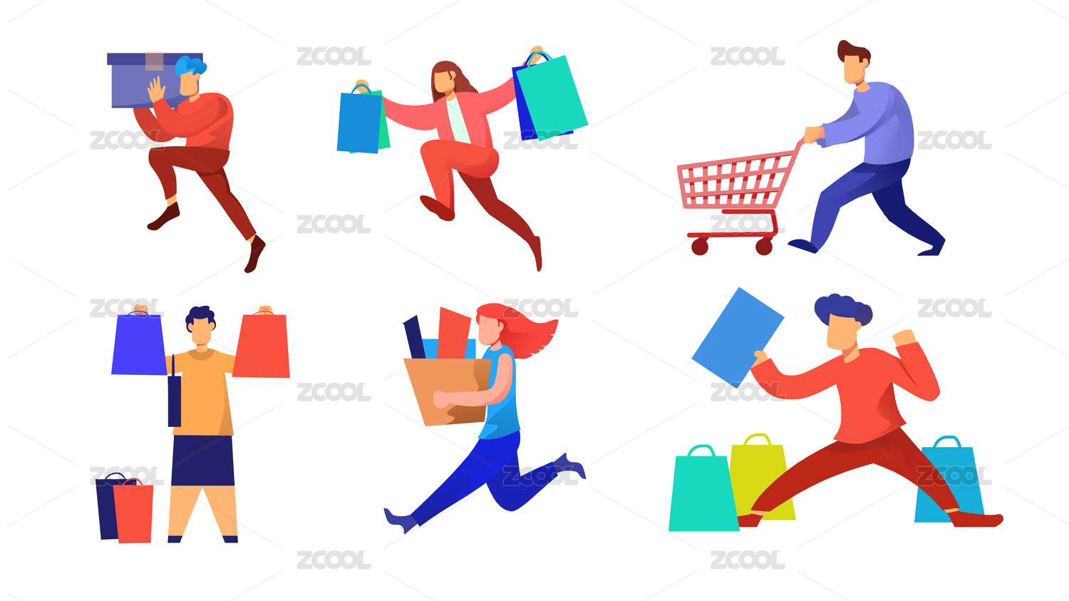 卡通手绘人物购物素材买东西购物车电商人物集合插画