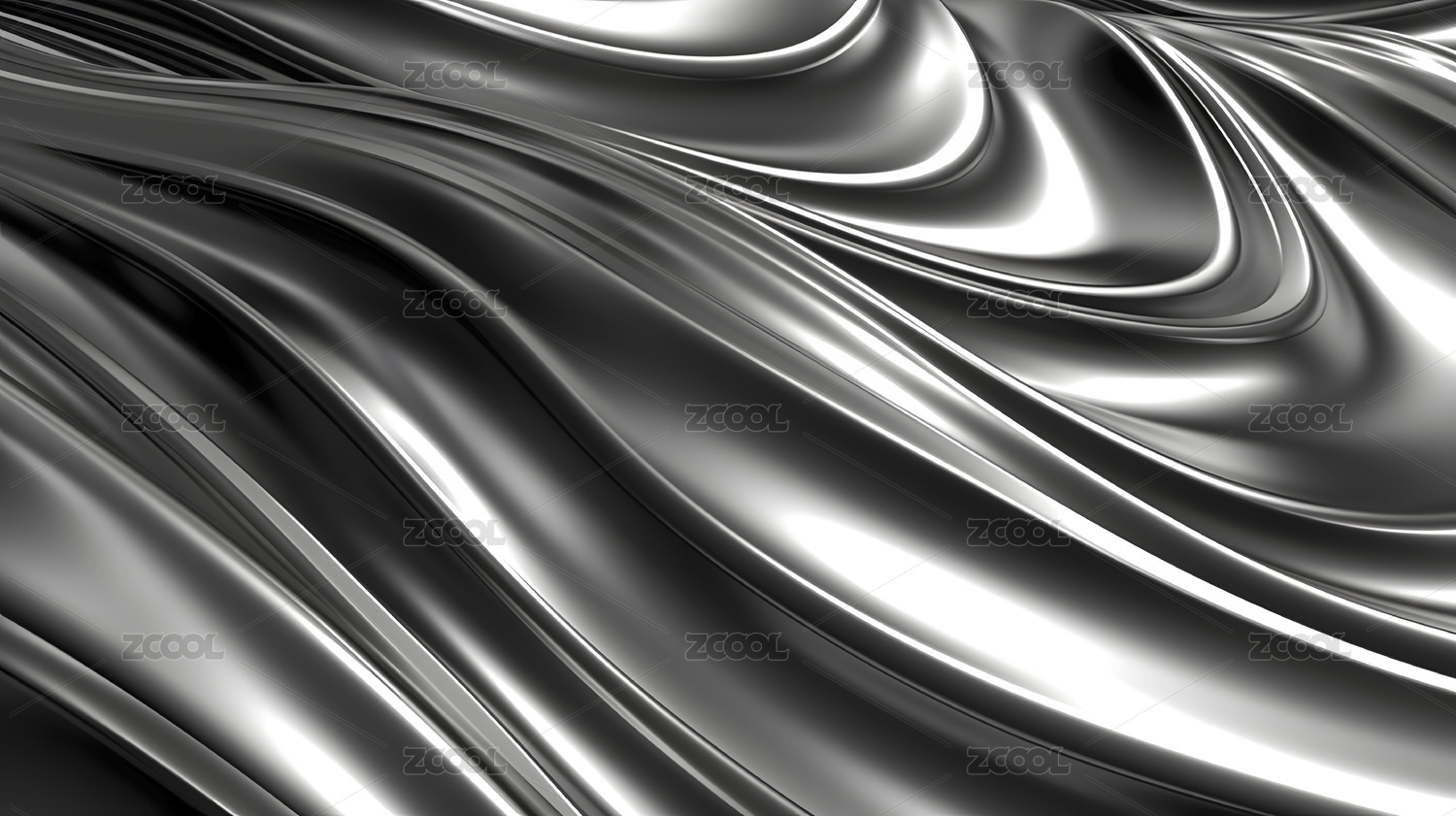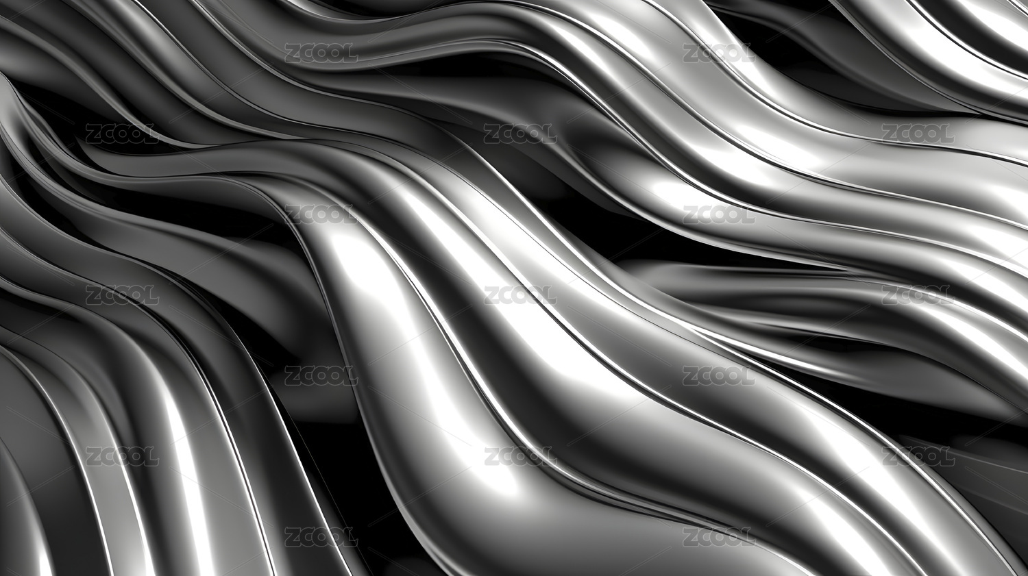 数码银色波浪曲线雕塑抽象图形海报背景