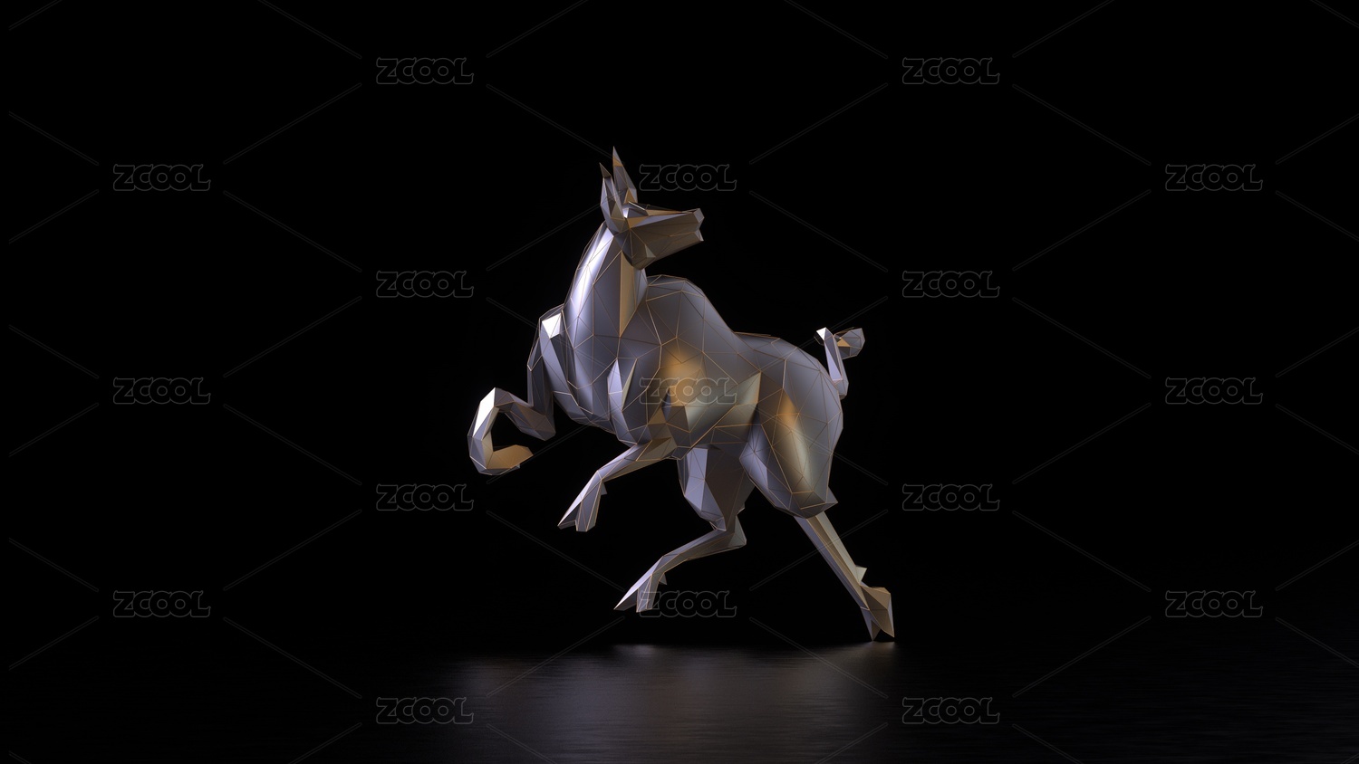 3D渲染黑底背景前的银色金属牛