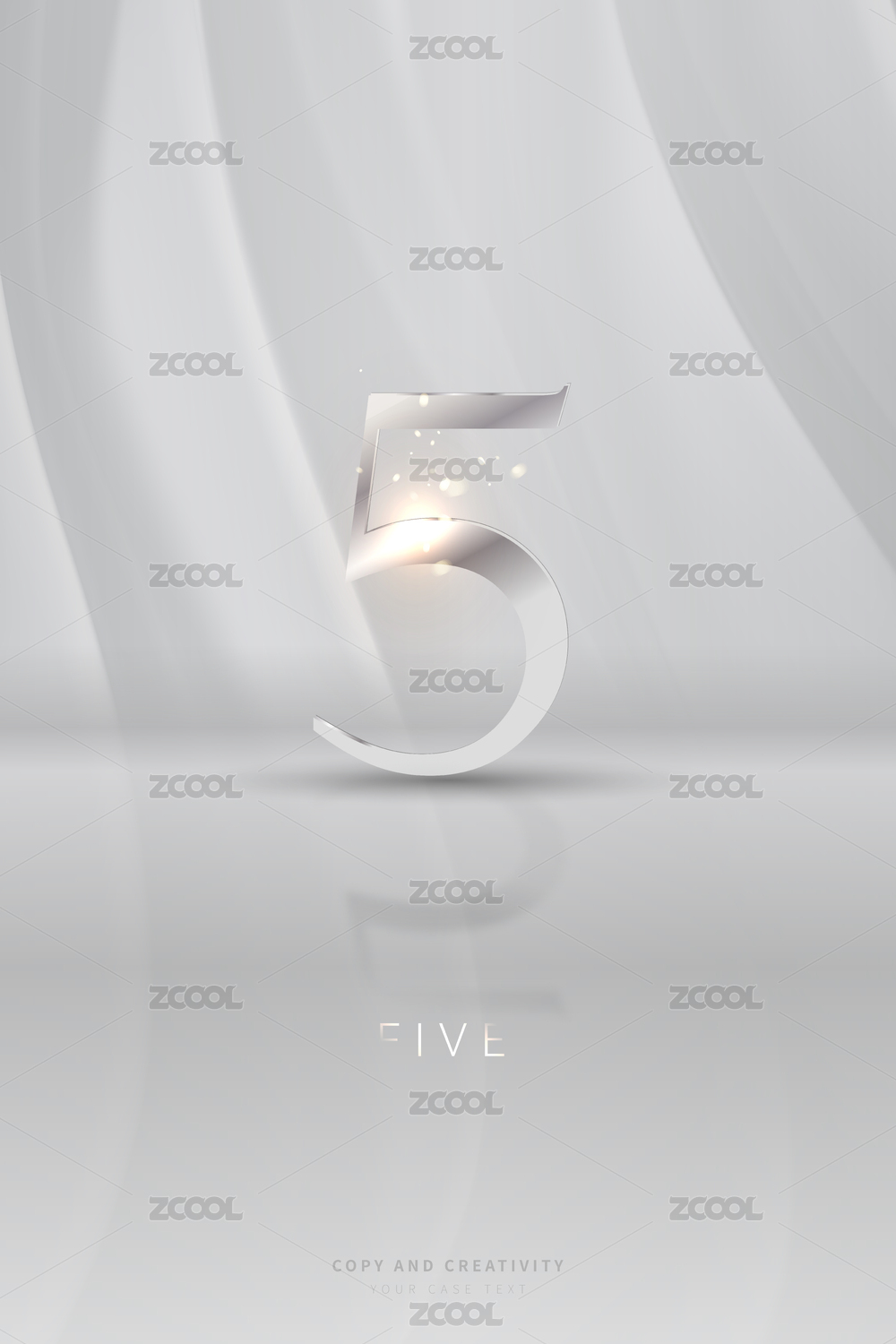 灰色背景银色立体闪光数字5创意设计海报