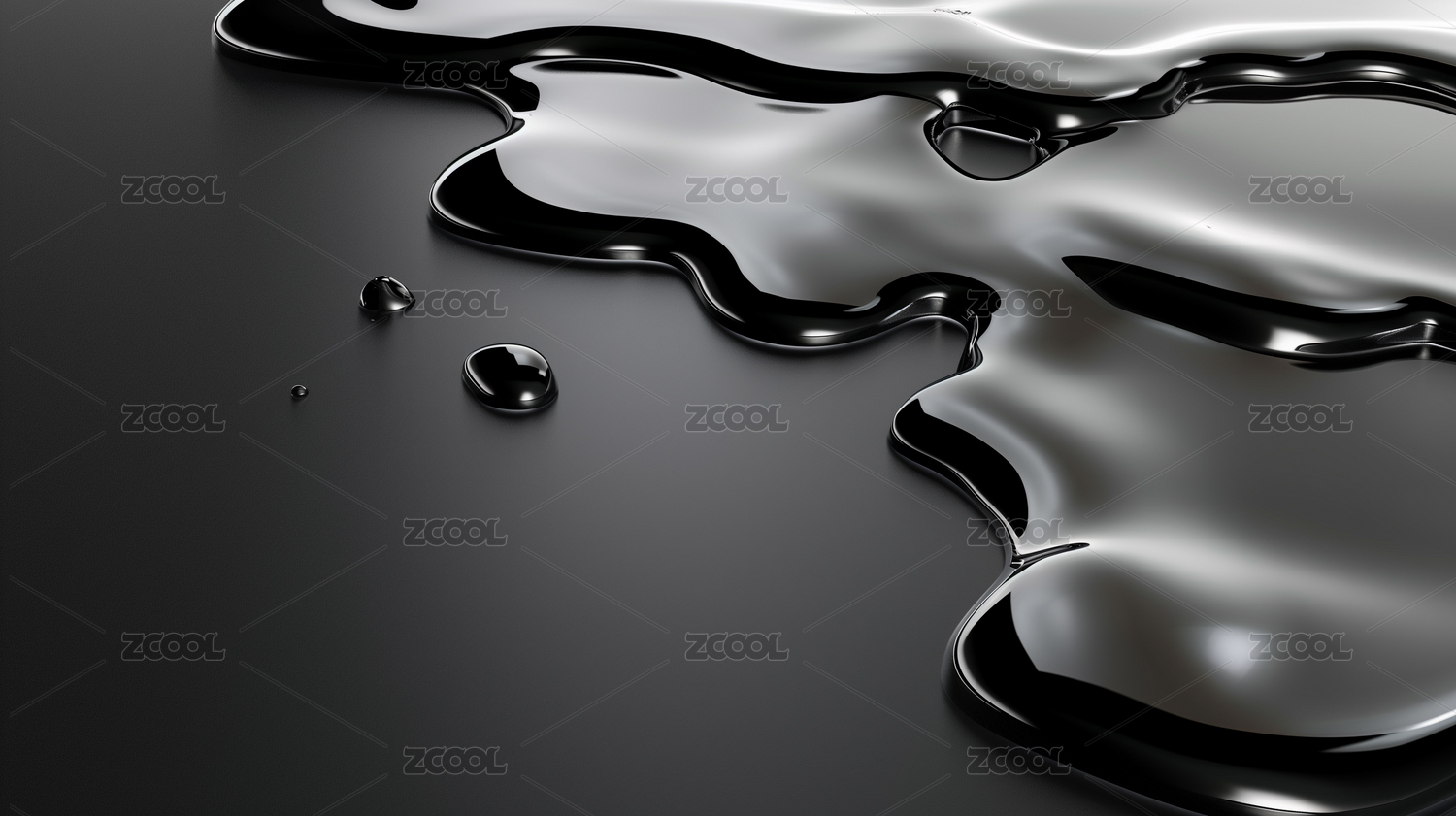 黑色平台上银色的水3D抽象科技流体插画