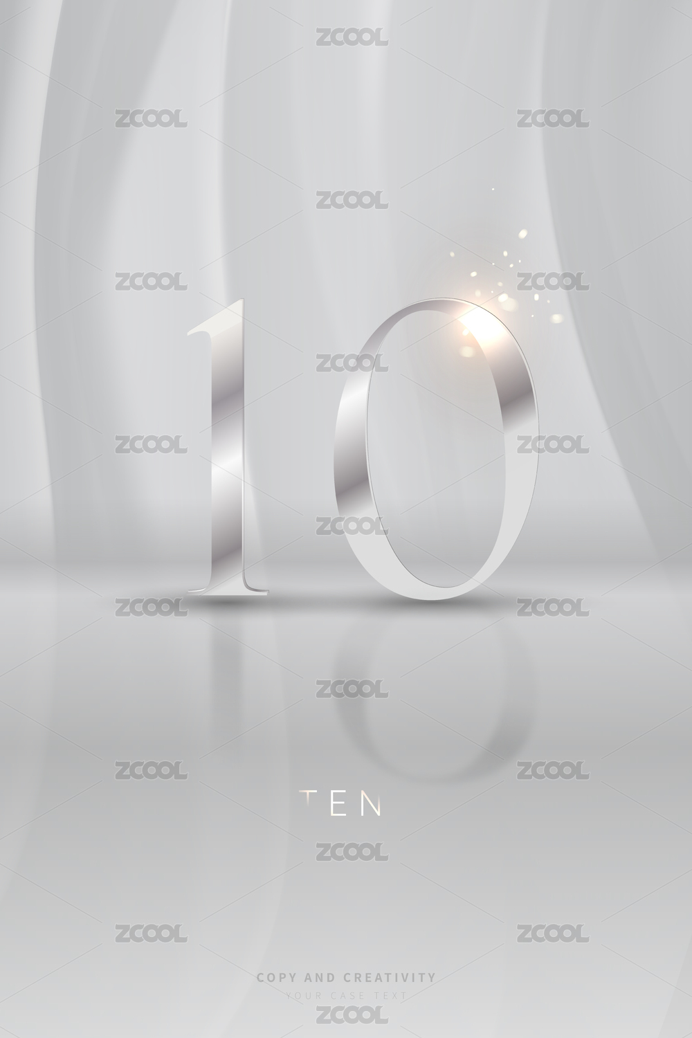 灰色背景银色立体闪光数字10创意设计海报