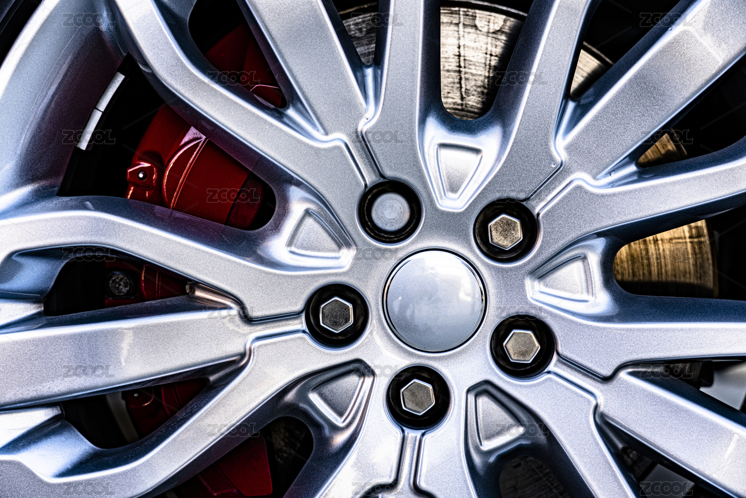 崭新的轿车汽车银色的轮毂特写