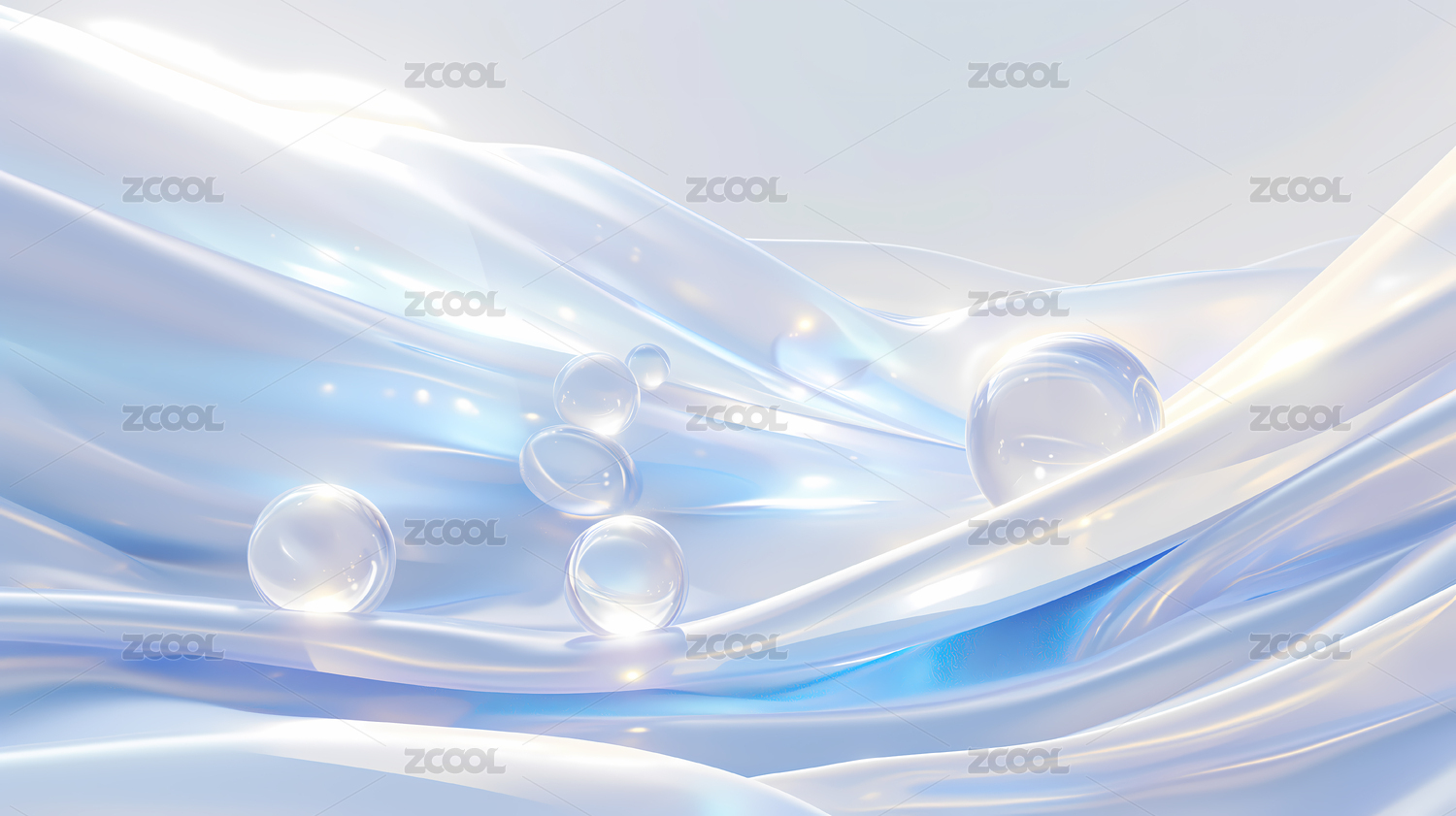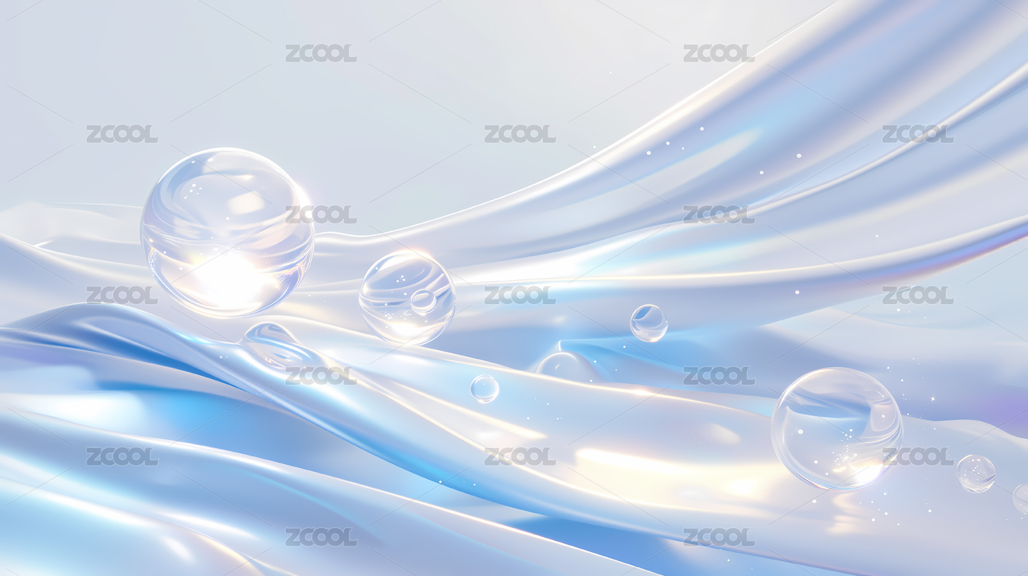 银色透明流体水珠唯美抽象背景三维插画