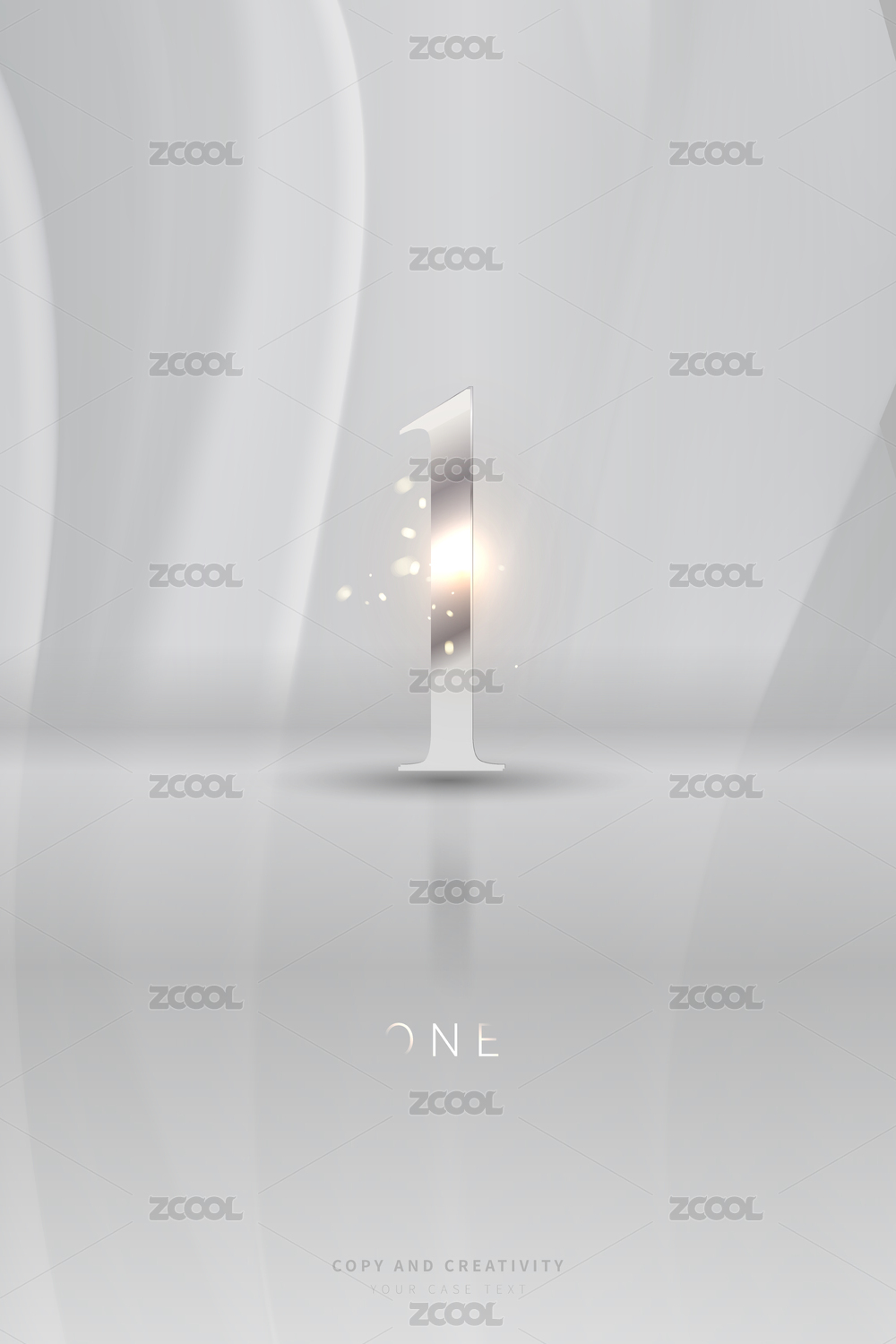 灰色背景银色立体闪光数字1创意设计海报