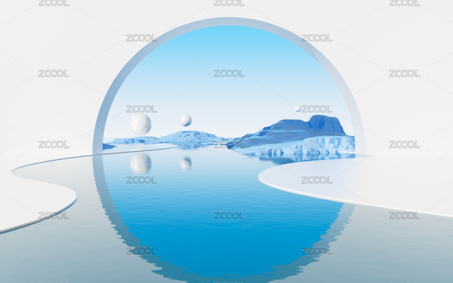 蓝色水面与光影3D渲染