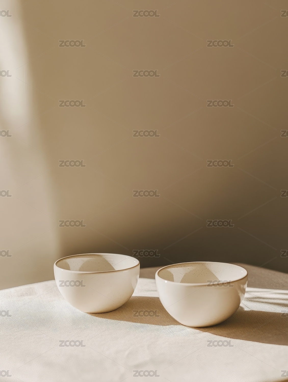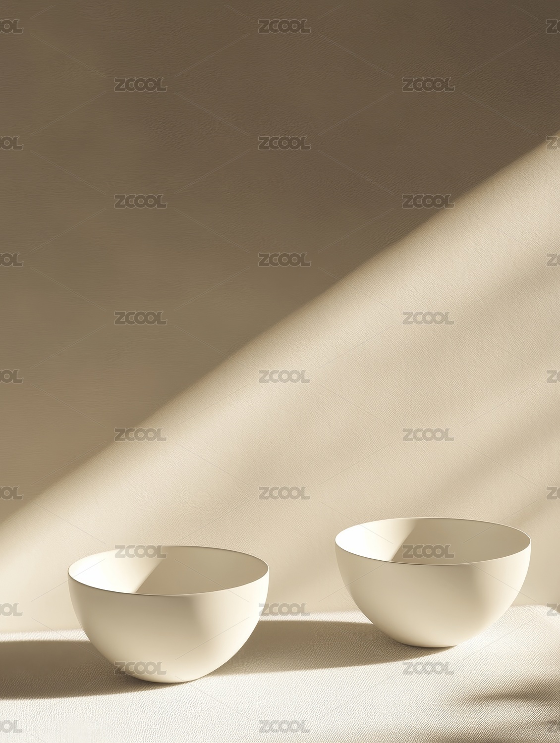 白色碗具静置于纯白背景之上