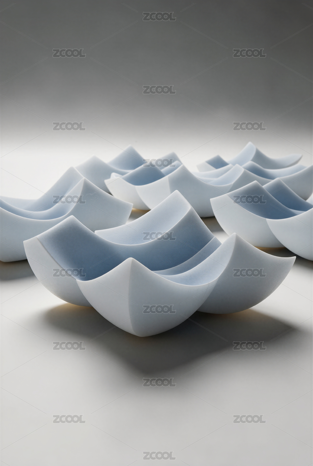 一组浅蓝白色相间的创意碗具