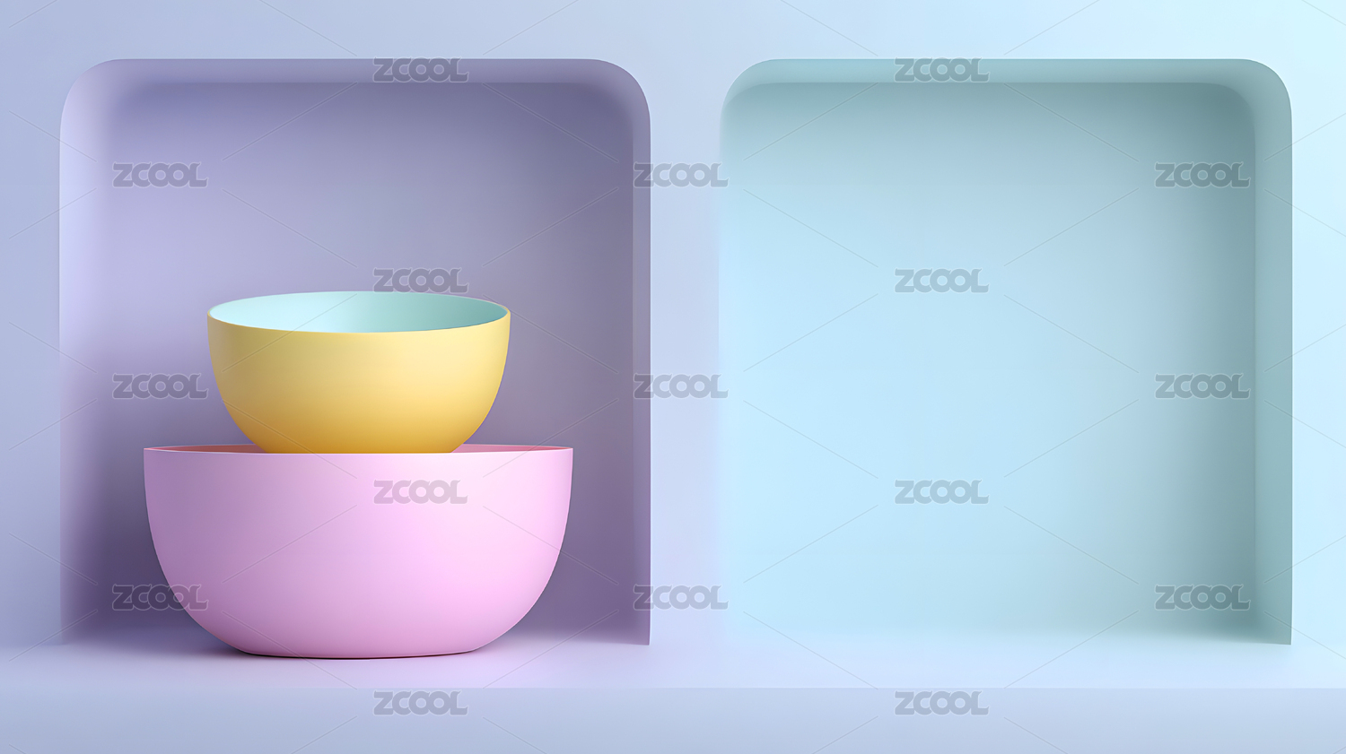 极简壁龛中的彩色碗具