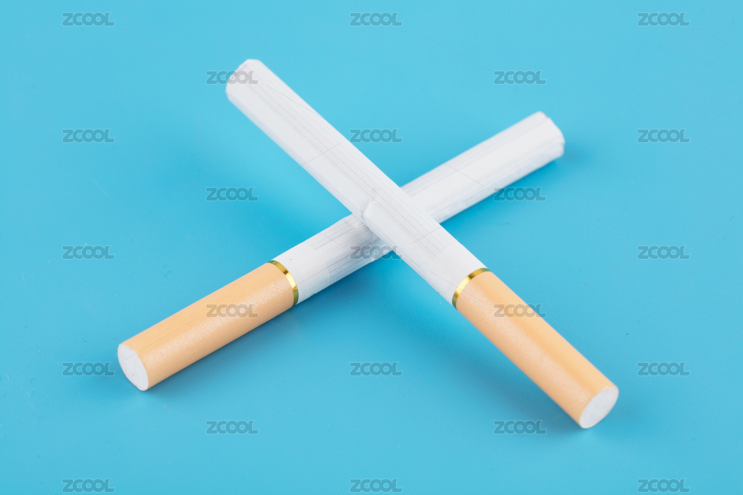 二根香烟在蓝色背景上