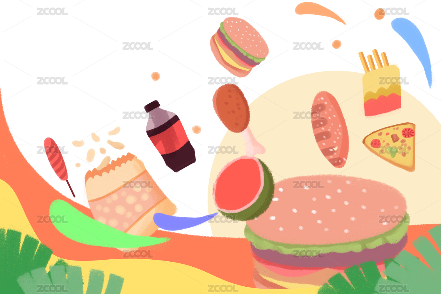 卡通手绘减肥健身肥胖危害插画