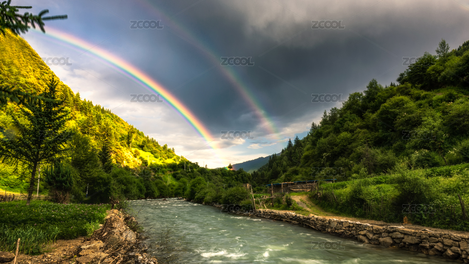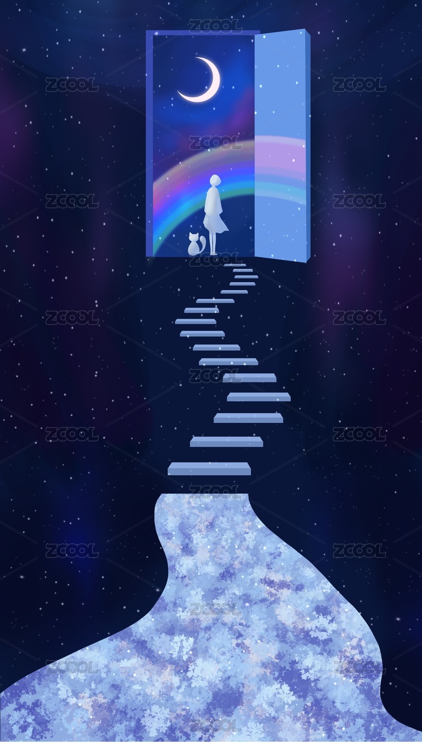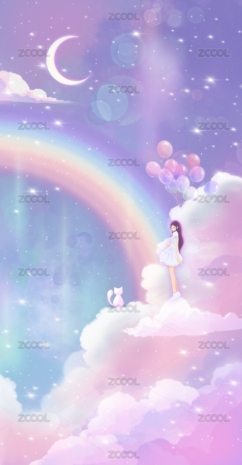 儿童节天空云彩虹桥积男孩女孩创意矢量插画