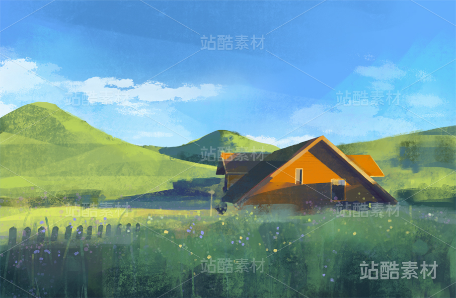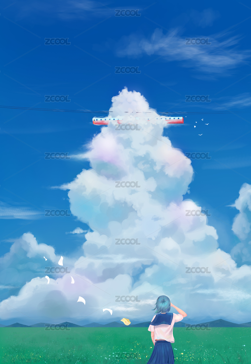 绿色唯美清新立夏节气蓝天白云下的花草丛