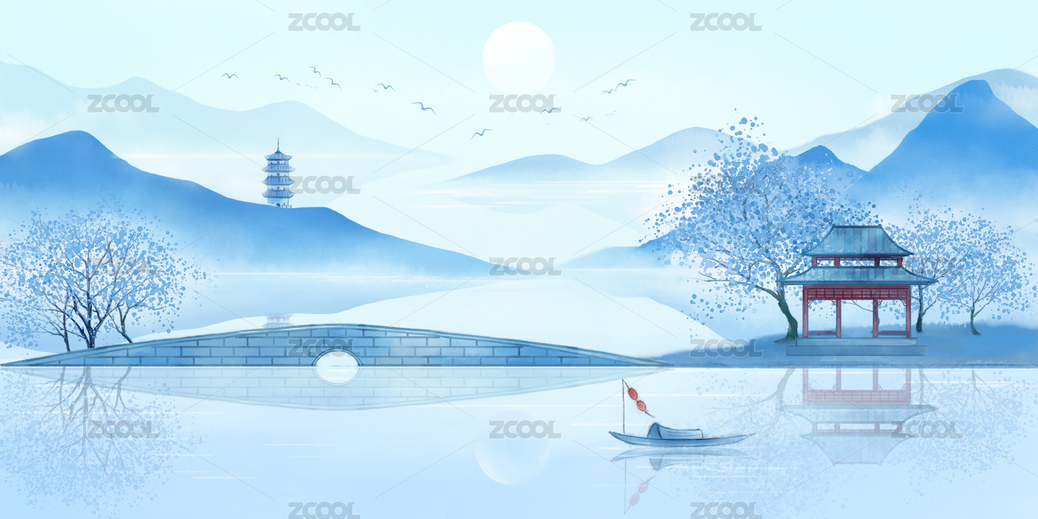 新中式意境写意山水画背景