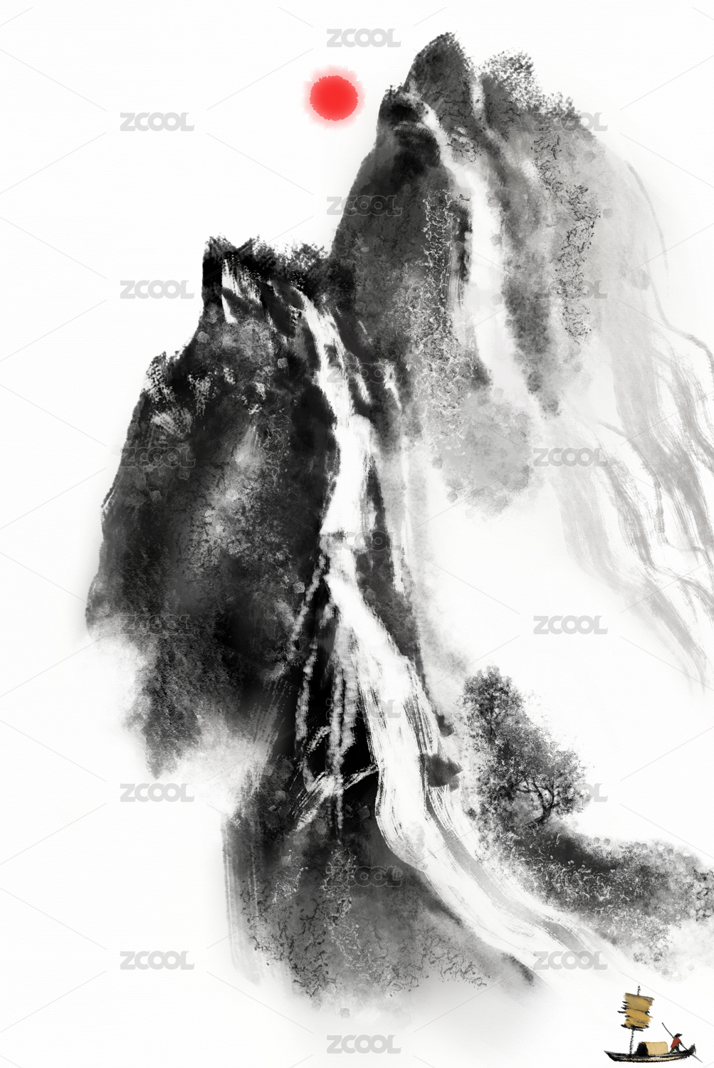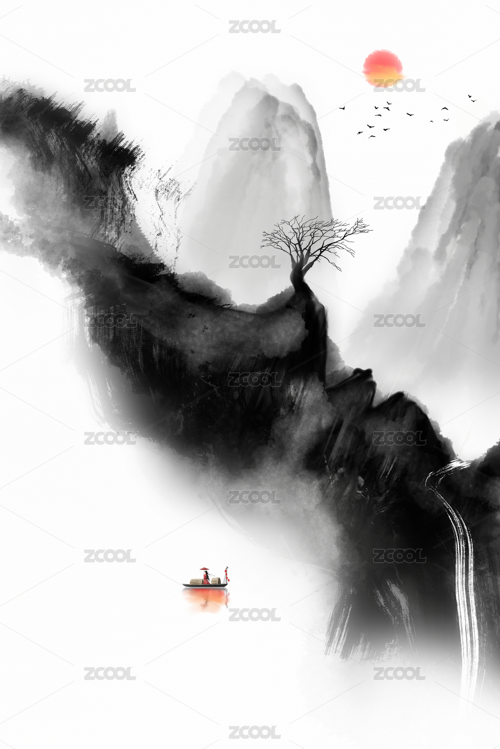 水墨风国画写意山水画插画
