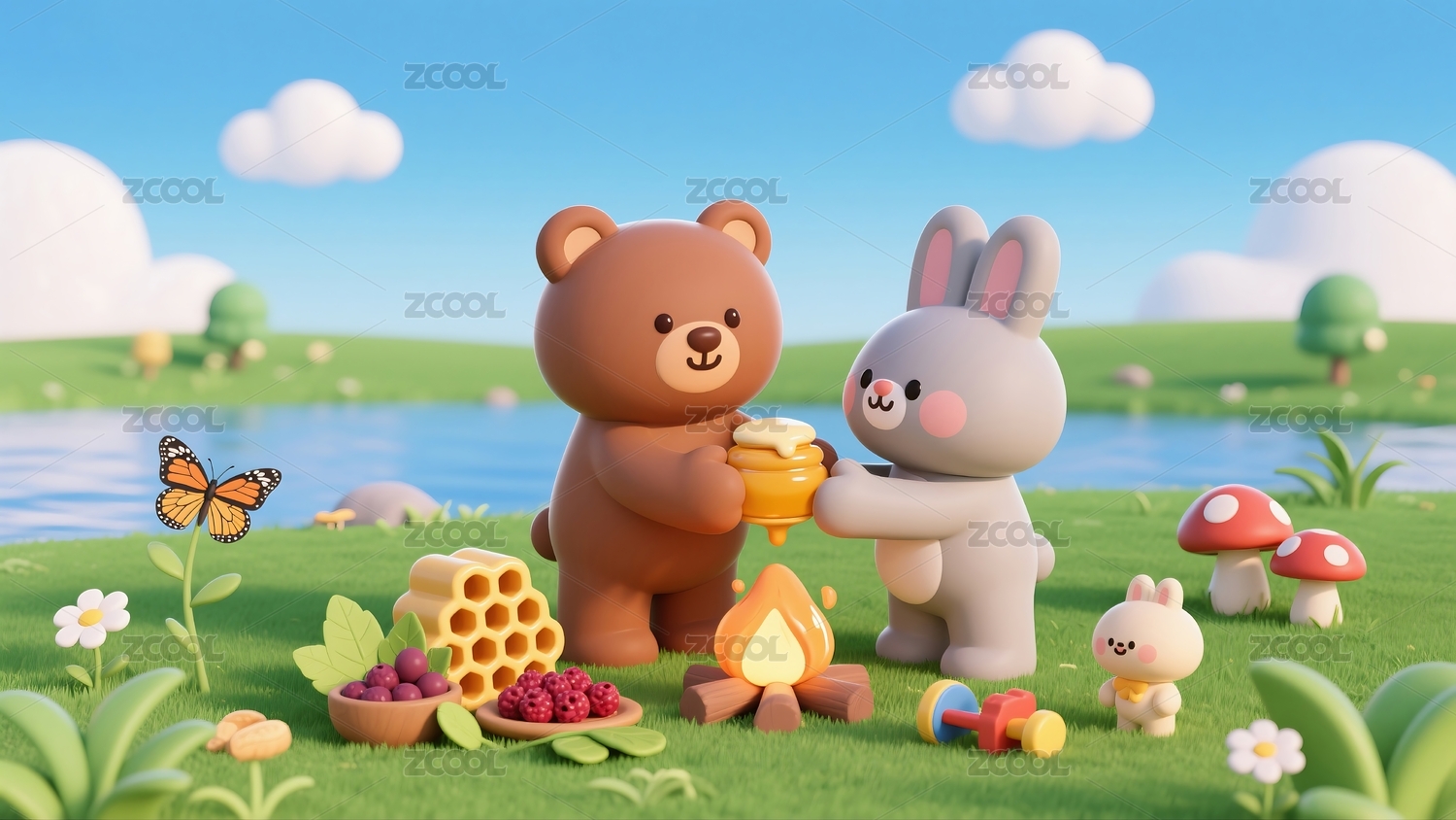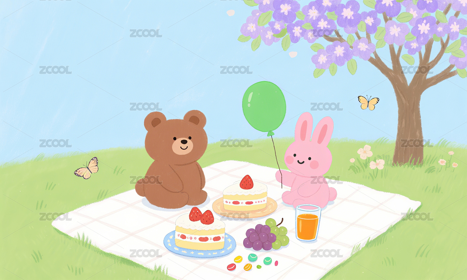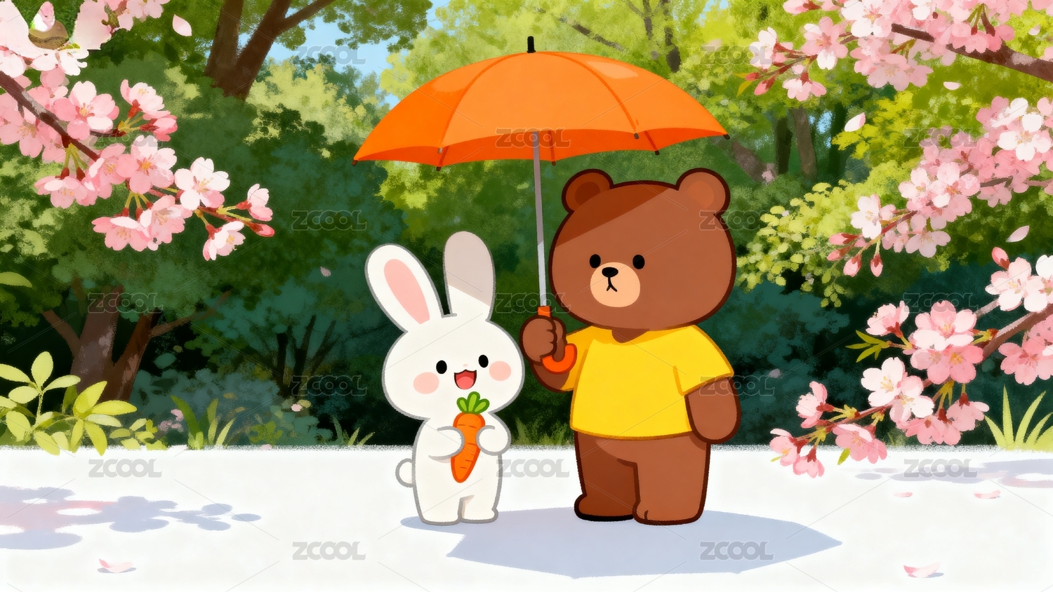 拉着熊玩具的戴兔耳朵发带的小女孩衣袖太长