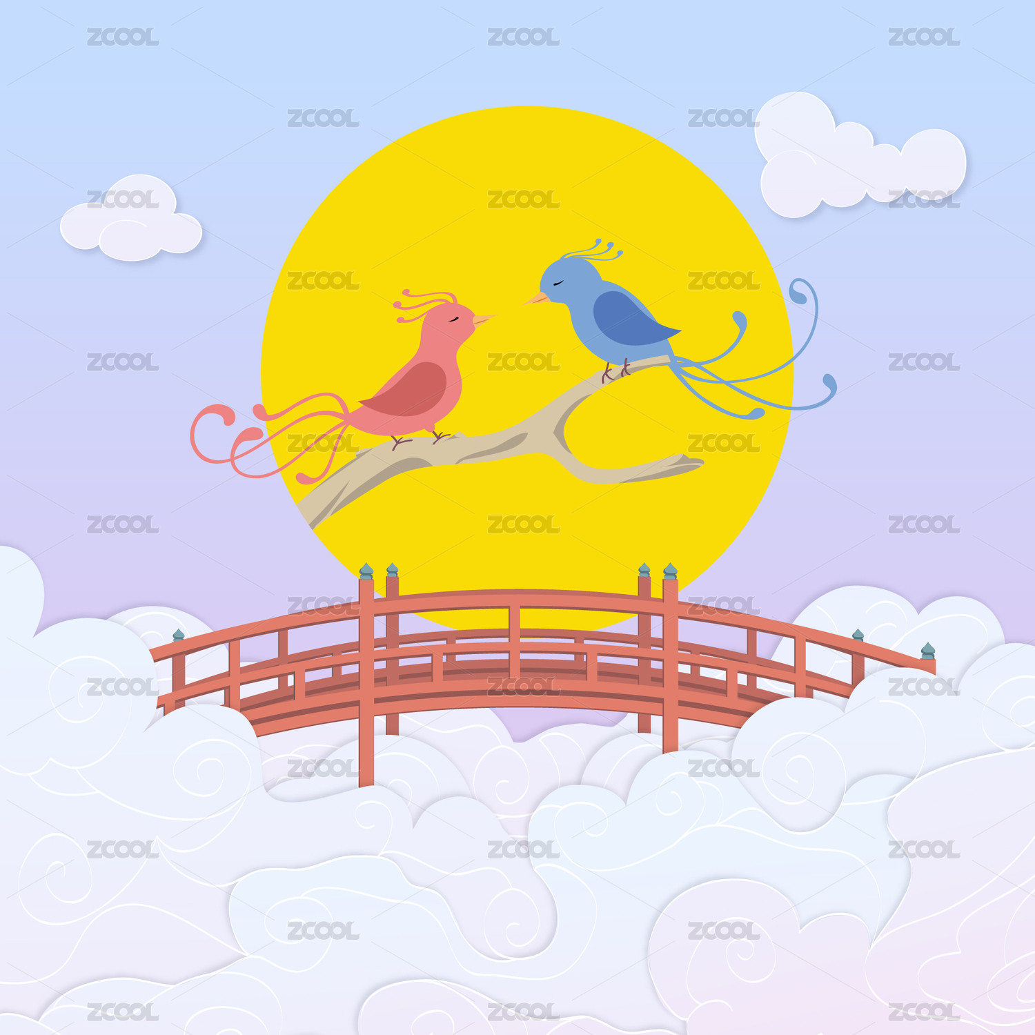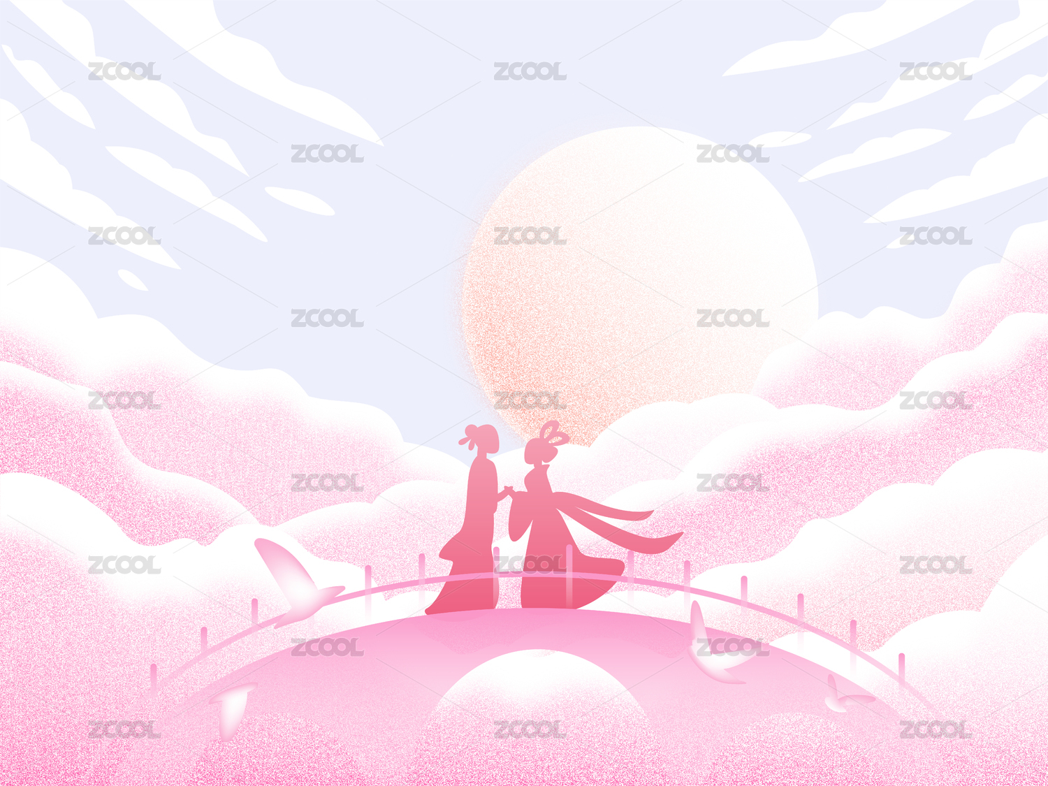 牛郎织女在月亮下的鹊桥相会