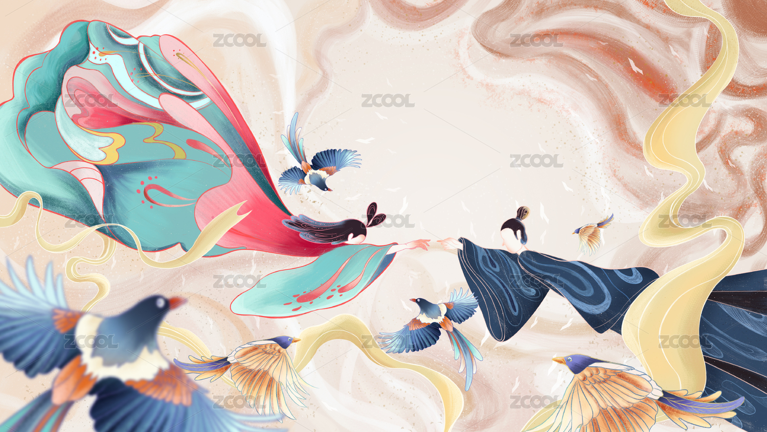 国潮风牛郎织女相会