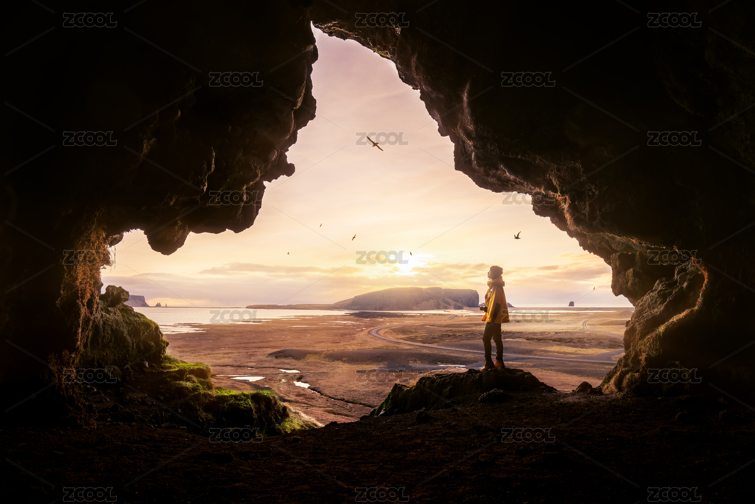 日落山洞晚霞