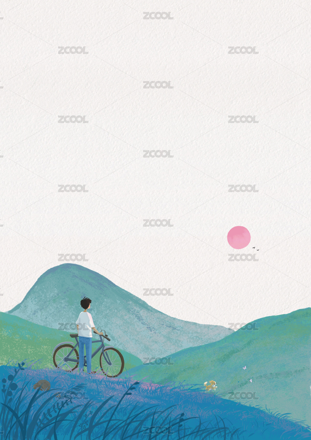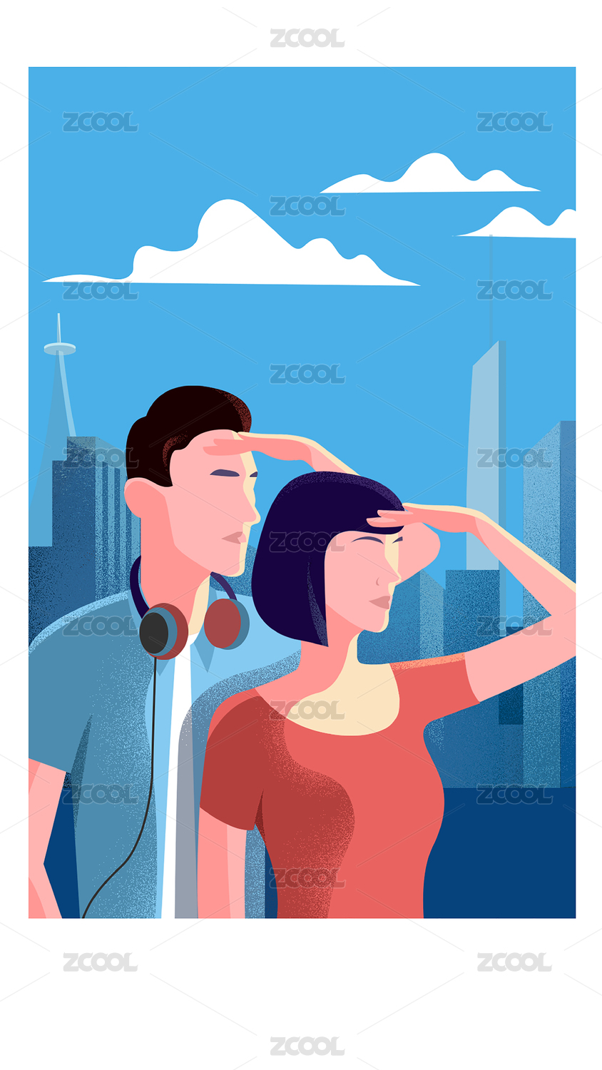 八月十五中秋节满月矢量插画,两只兔子眺望着月亮