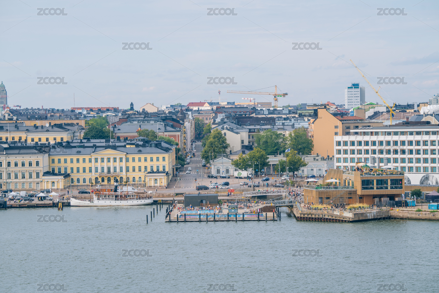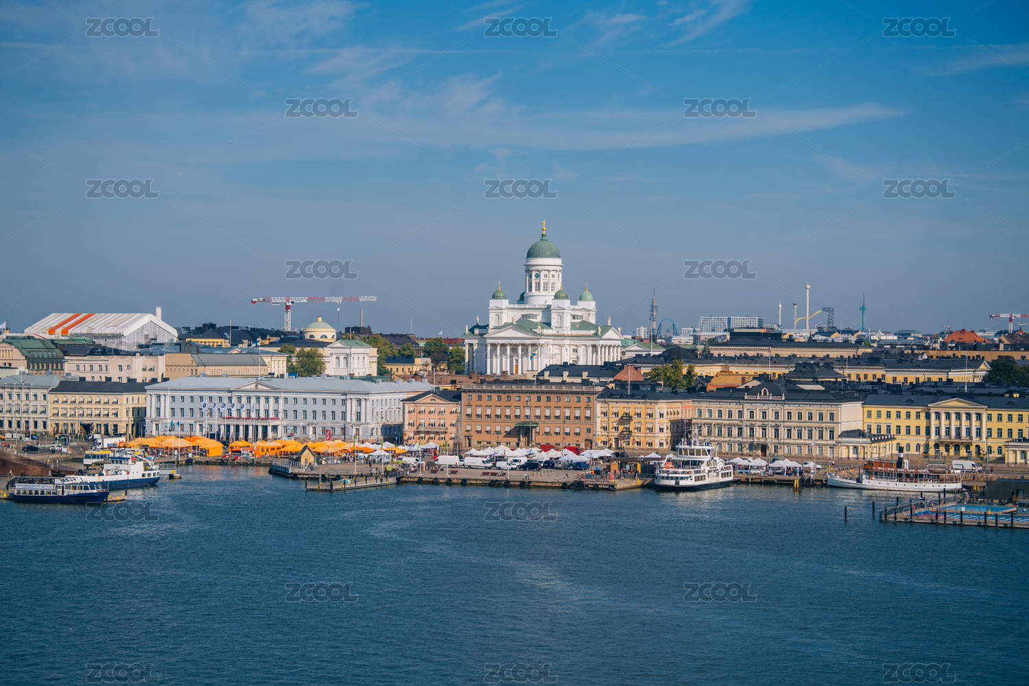 美丽的芬兰赫尔辛基城市天际线与海洋风光