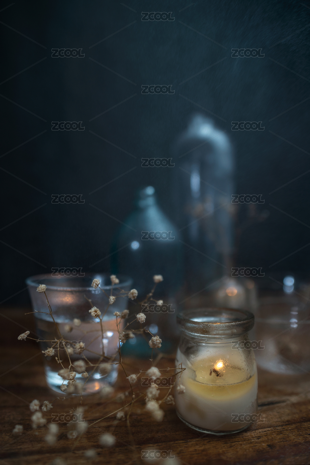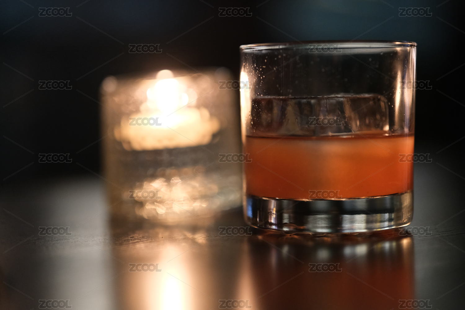 夜晚的酒吧里的一杯鸡尾酒和烛光