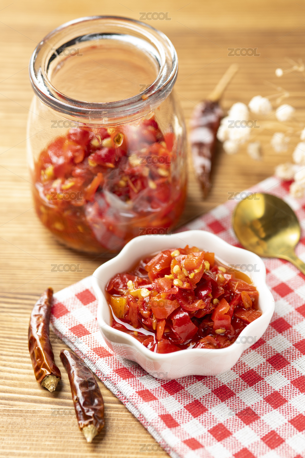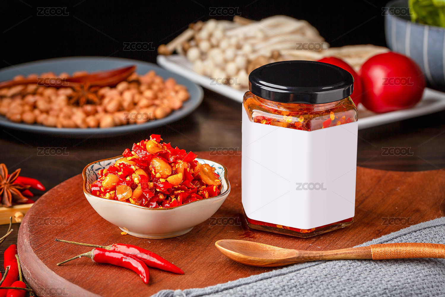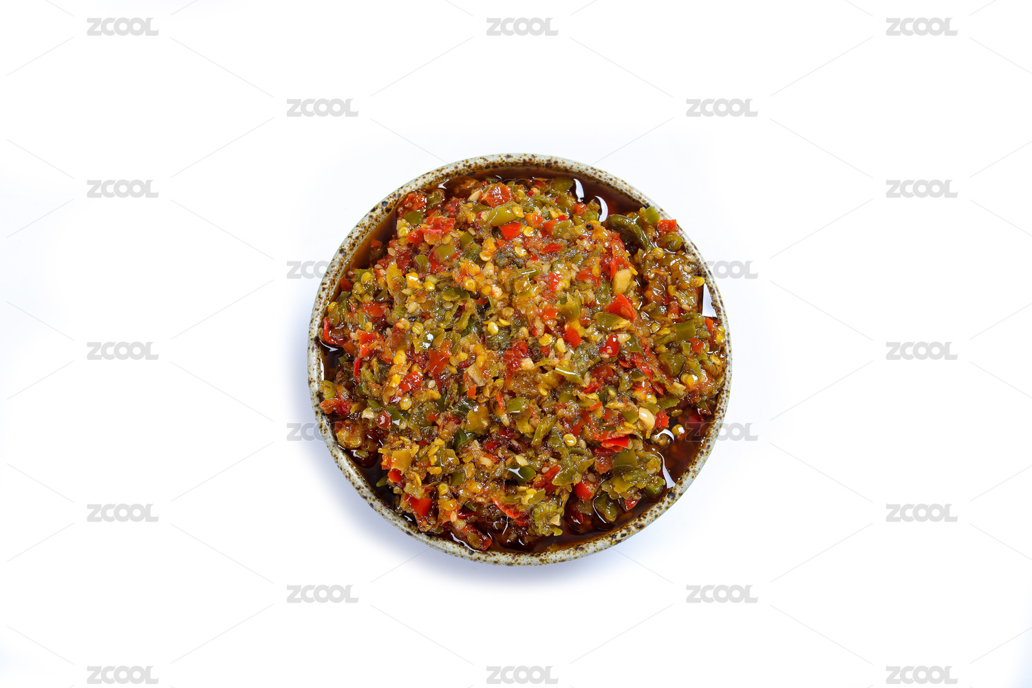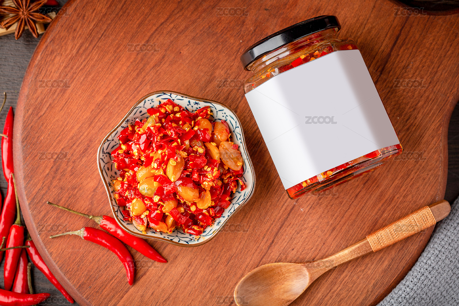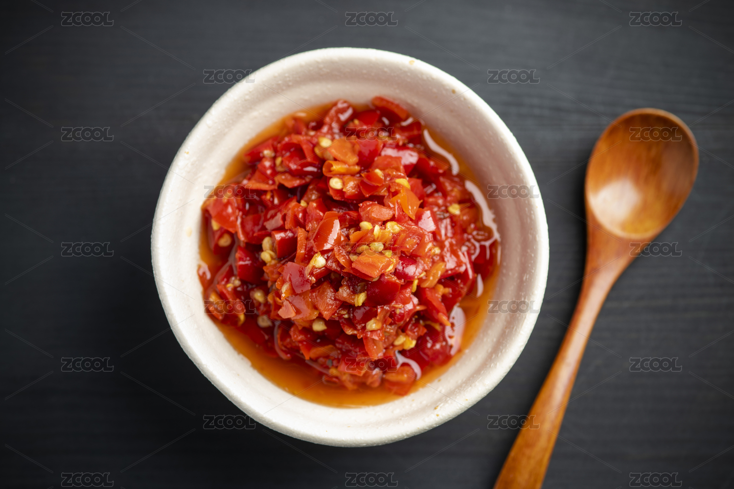 手上拿着馒头蘸着剁椒酱和筷子上夹着馒头