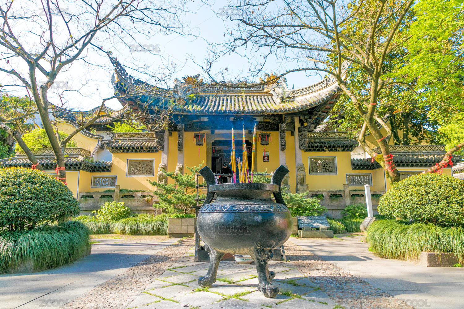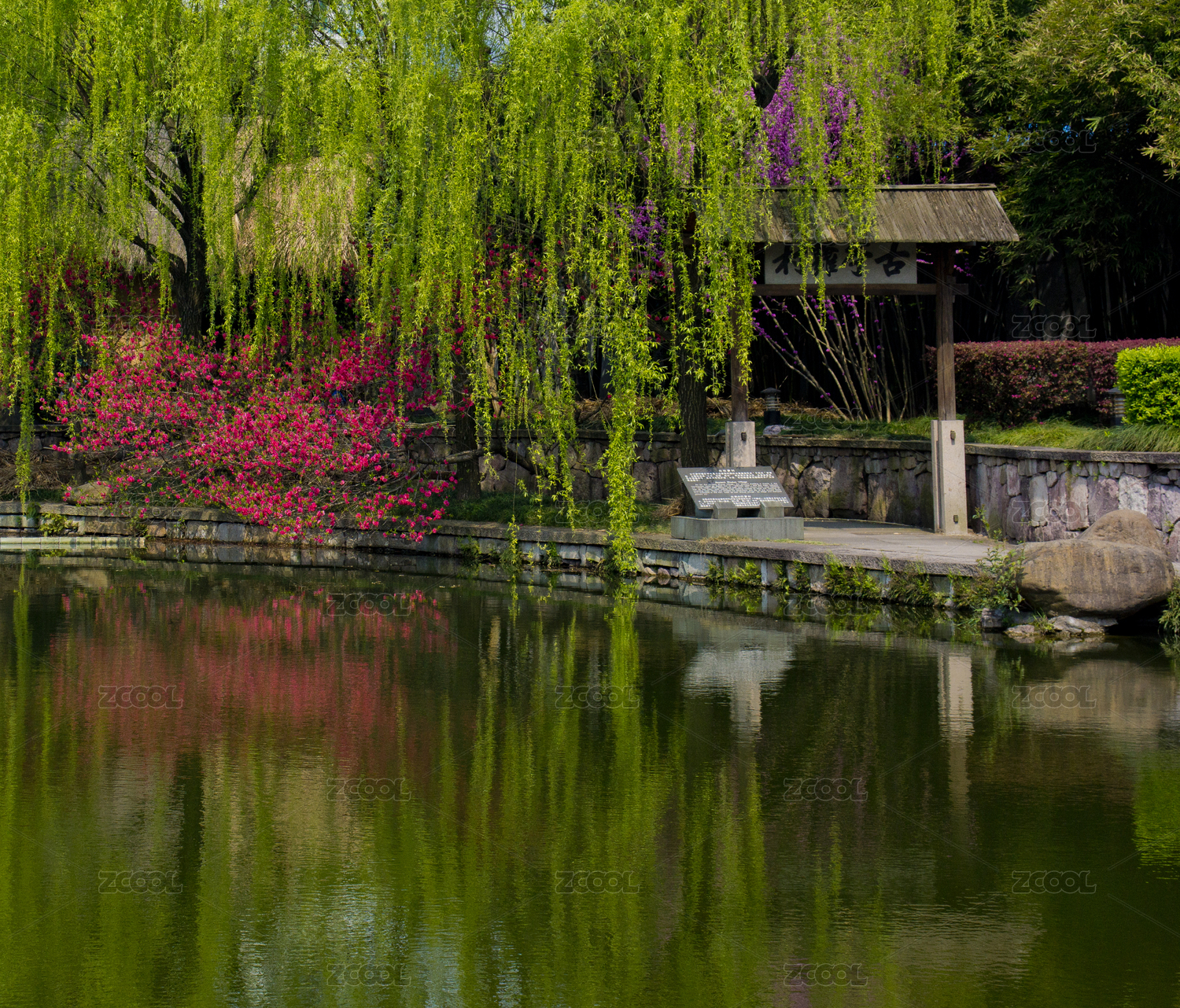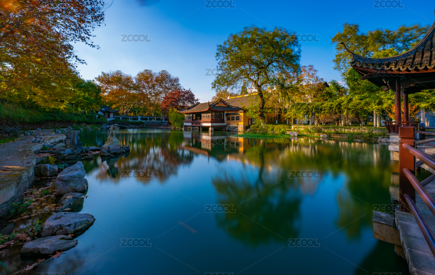 中国江苏无锡蠡园浣纱溪畔邀鱼轩及西施塑像