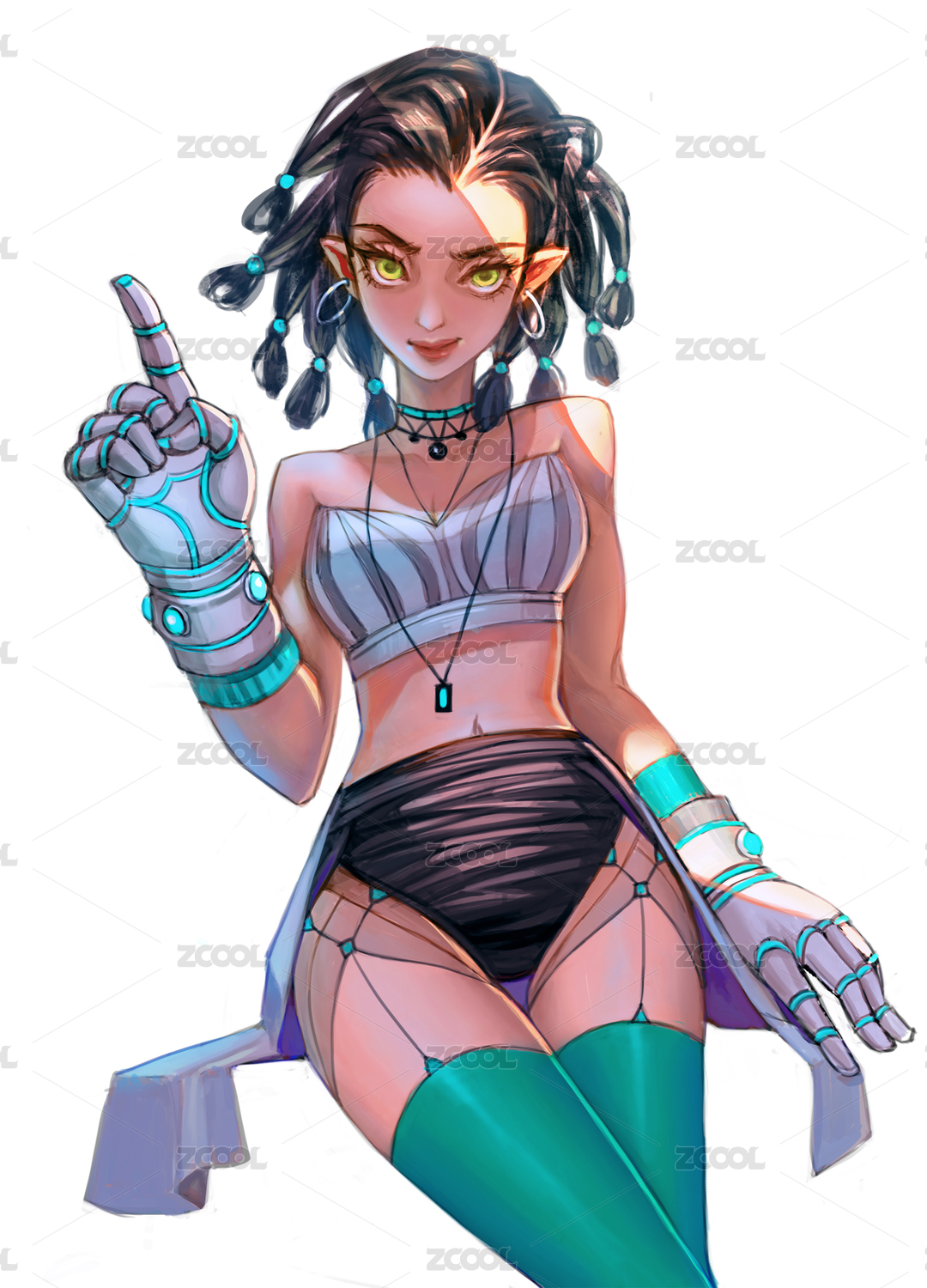 欧美风野性格斗脏辫美少女卡通原话插画素材