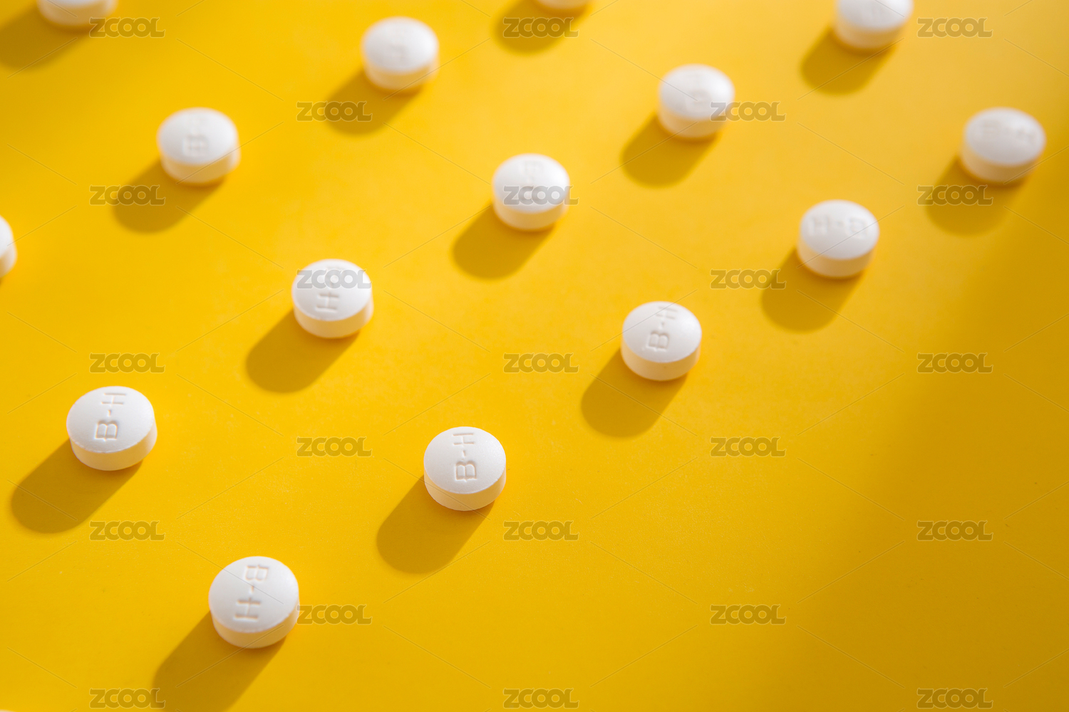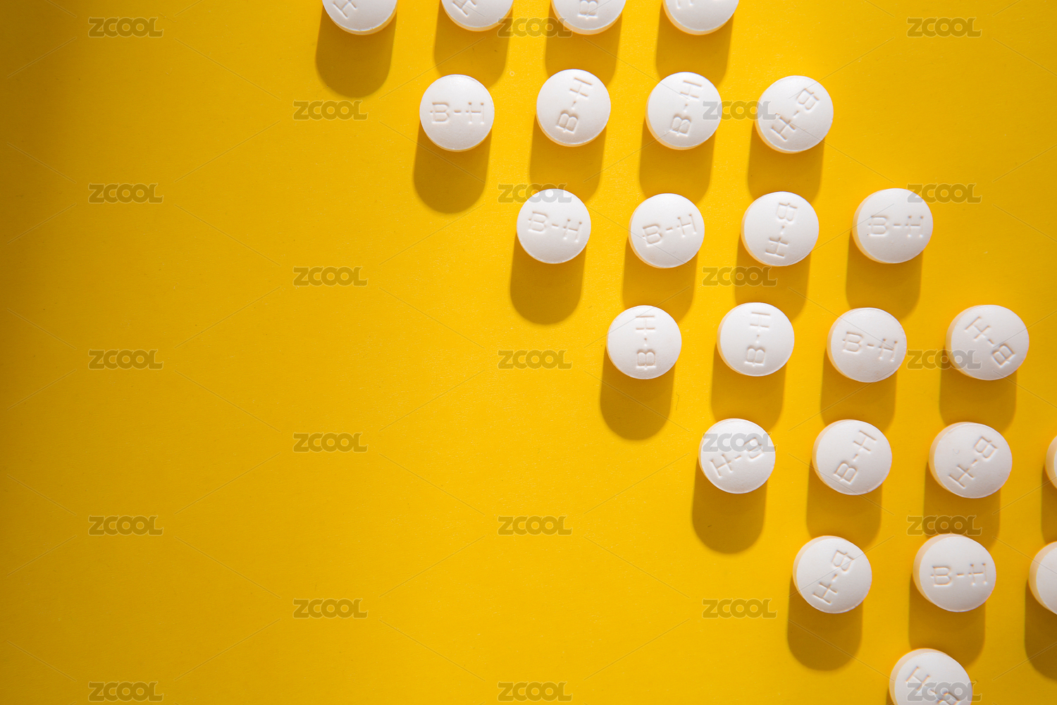 黄色背景上排列的白色药片