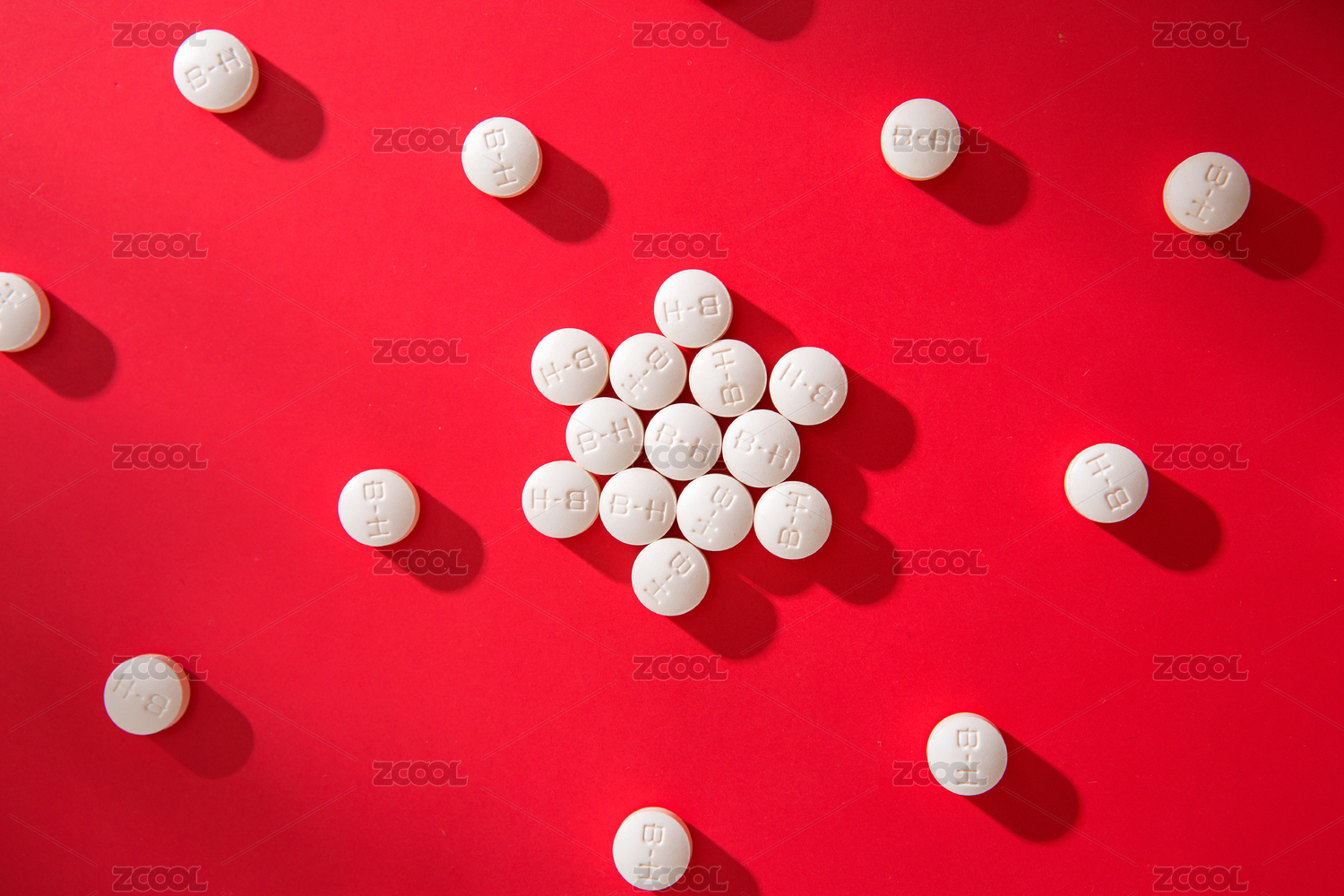 白色药片整齐排列在红色背景